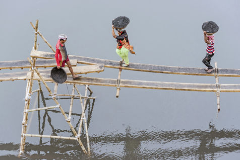 The loads weigh between 25 and 40 kg, 50 kg for cement bags. A person can thus earn between 5 and 8 Euros per day at the cost of disproportionate efforts. This income is higher than that provided by many jobs in Bangladesh, but the task is particularly tiring and sometimes dangerous.