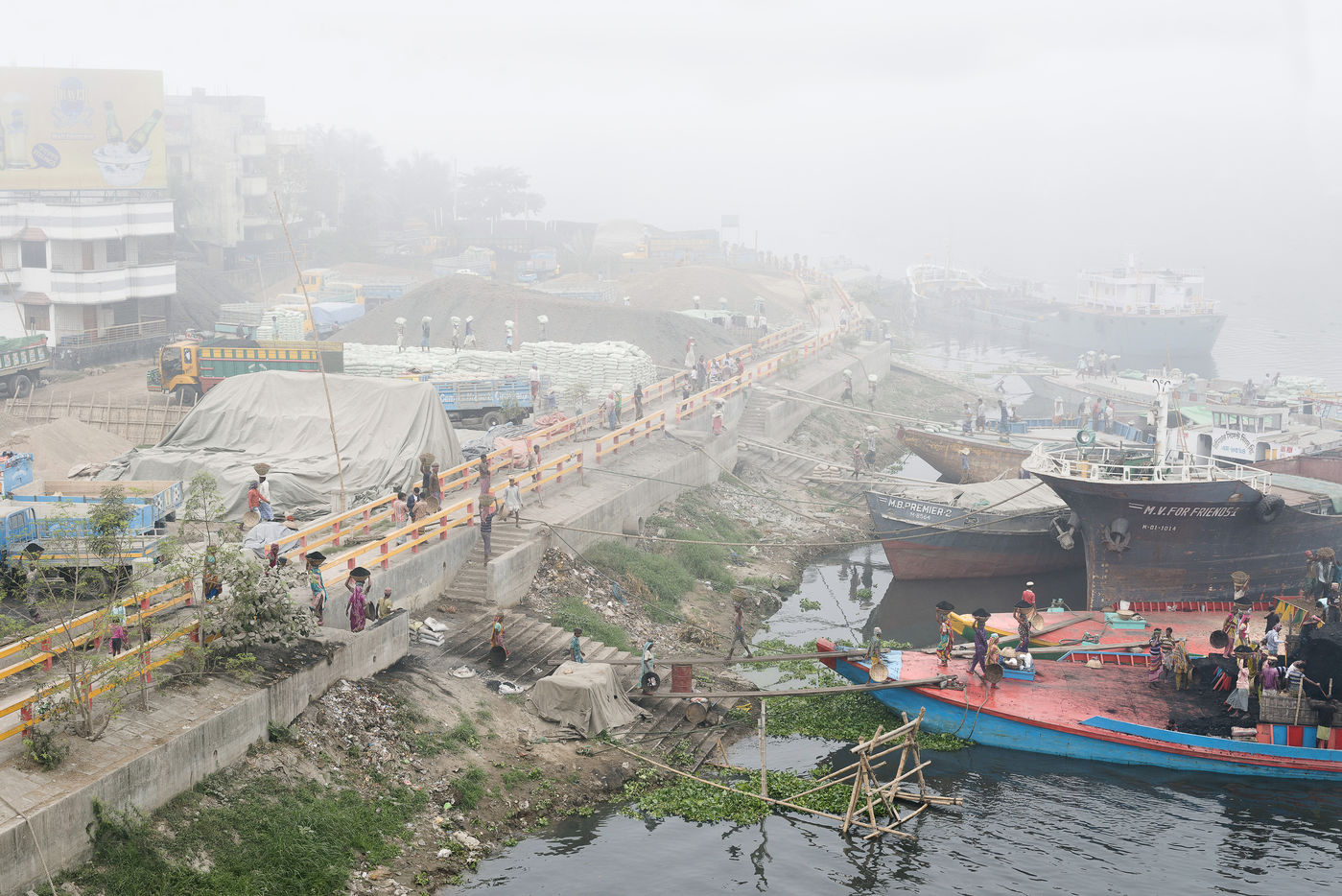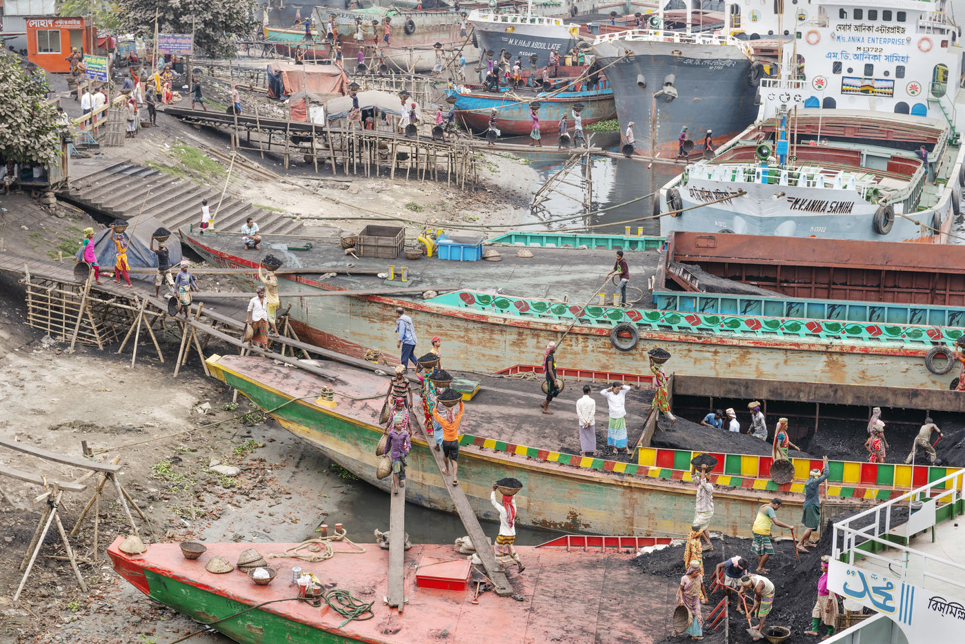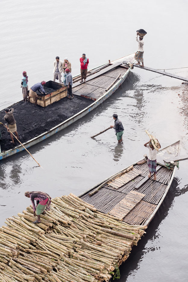 In the port of Gabtoli, on the outskirts of Dhaka, thousands of day labourers rip mountains of sand, gravel, cement, bricks and coal from the bellies of boats.
