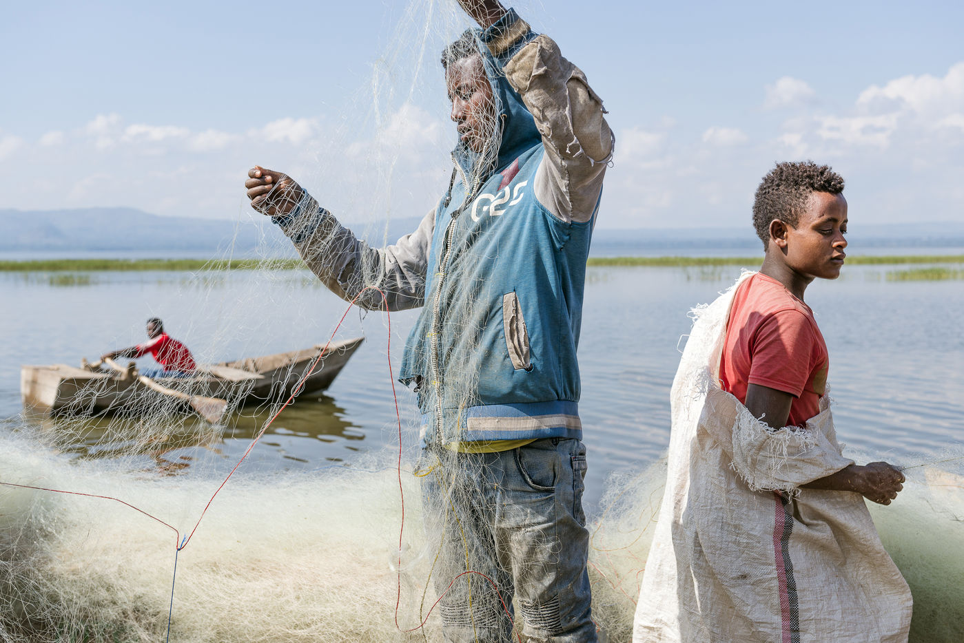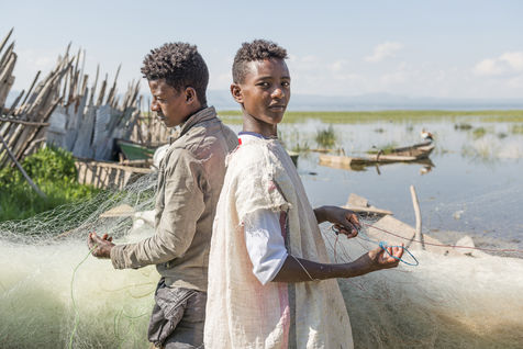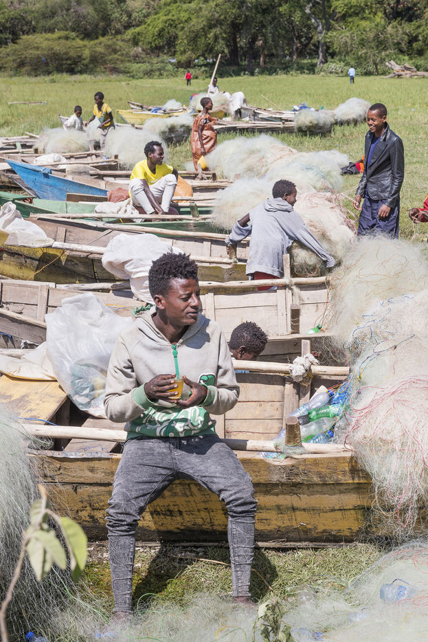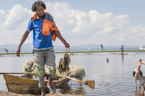 Lake Awassa in Ethiopia is part of this chain of lakes. Its waters full of fish provide a livelihood for many fishermen, including many children, who work as soon as the sun rises.