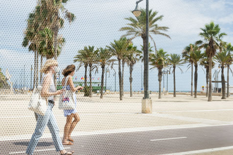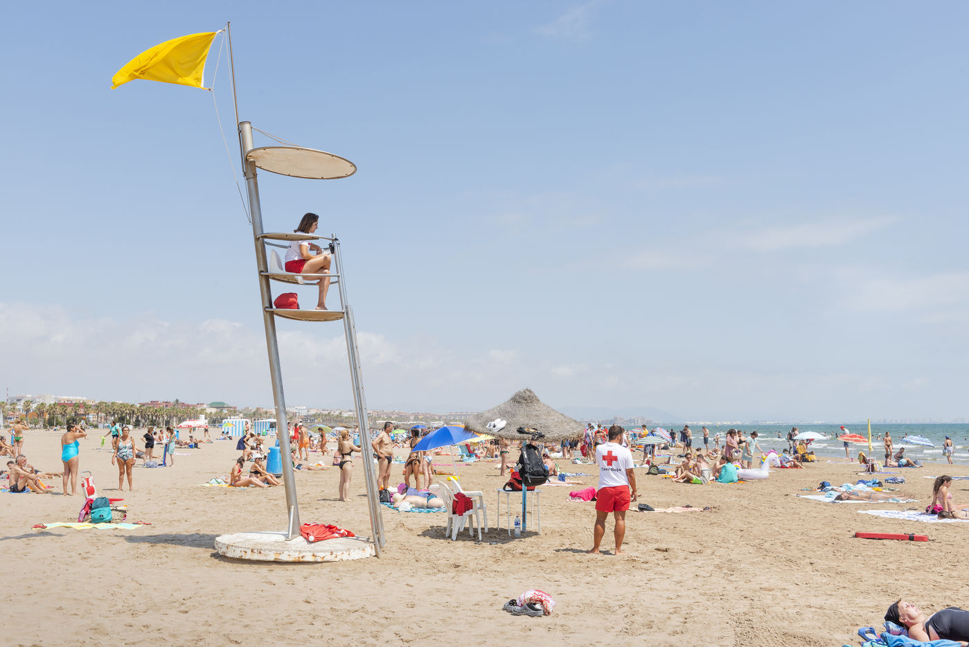 Illustration of the great beach of Valencia in Spain. Despite the new acceleration of covid 19 contaminations and the complications related to the health pass, many foreign holidaymakers came to enjoy their vacations.