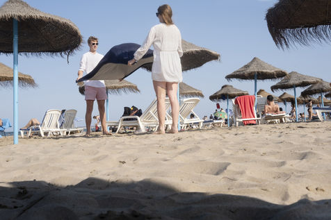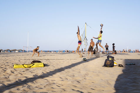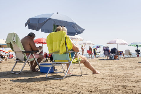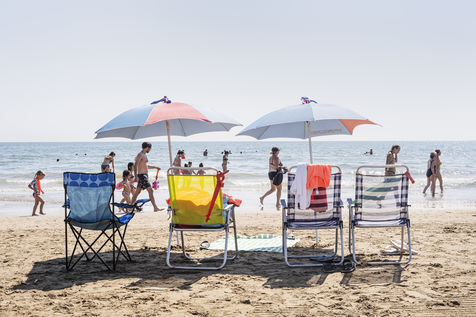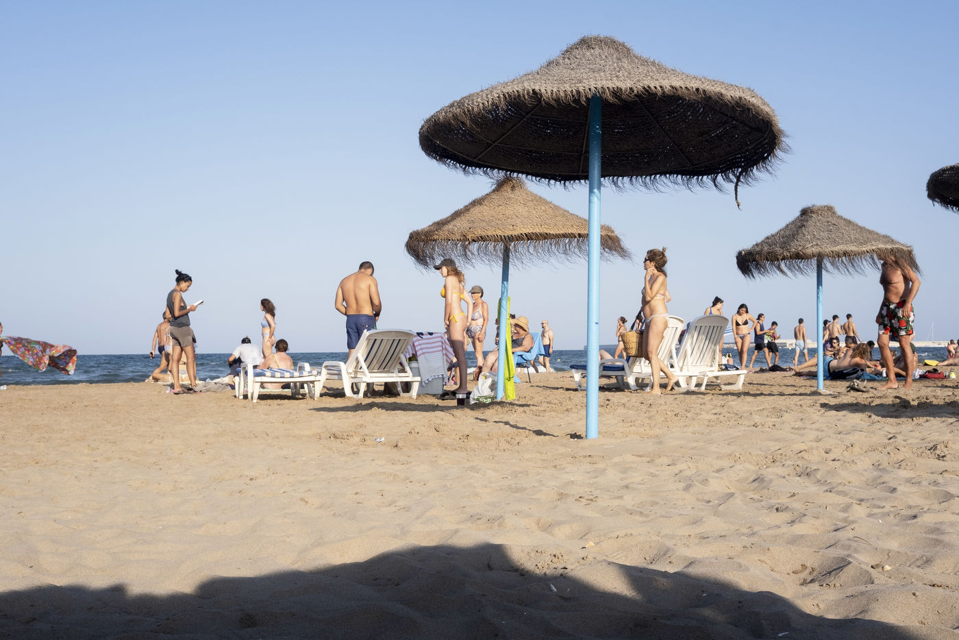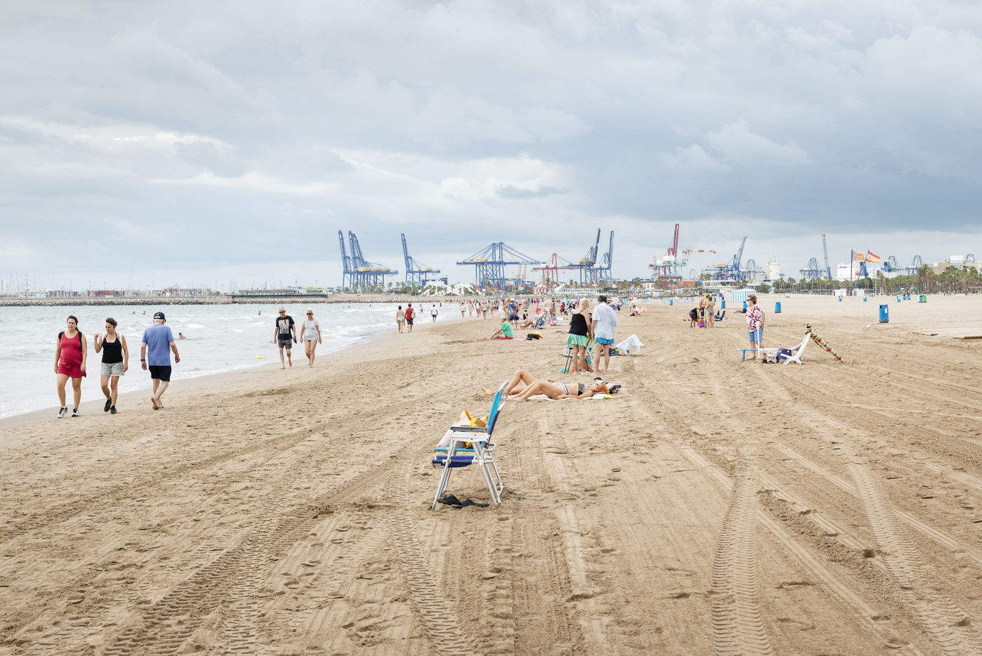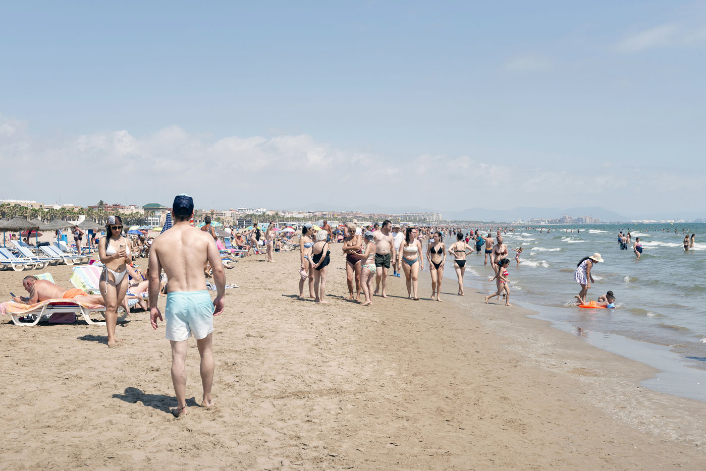 Images d'illustartion de la grande plage de Valence en Espagne. Malgré la nouvelle accélération des contaminations au covid 19 et les complications liées au pass sanitaire, de nombreux vacanciers étrangers sont venus profiter de leurs vacances.