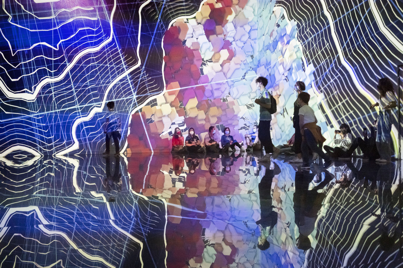 These creations are projected on all the walls of a room called The Cube because of its shape. Visitors who enter the room find themselves immersed in the heart of the creation.