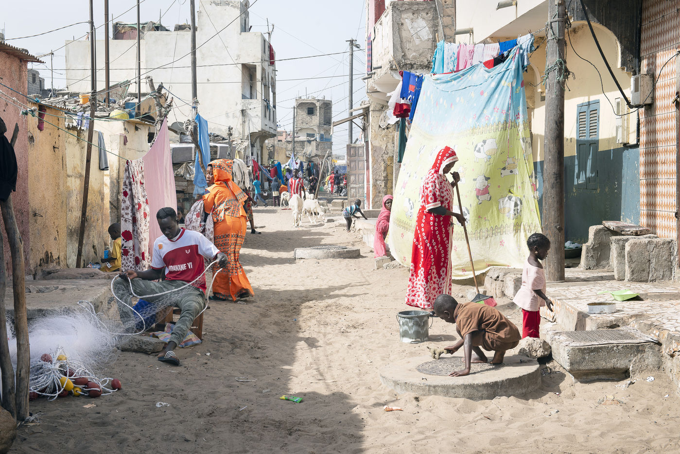 The neighbourhoods of Saint Louis and Guet Ndar, which are located on the Langue de Barbarie, are home to more than thirty thousand people, mostly fishermen and their families. Facing the ocean, many of their houses were destroyed during the recent storms, and they have lost everything. They have to rehouse themselves at their own expense, be accommodated somewhere by their families or go to the emergency camps made available to them by the authorities with the support of NGOs.