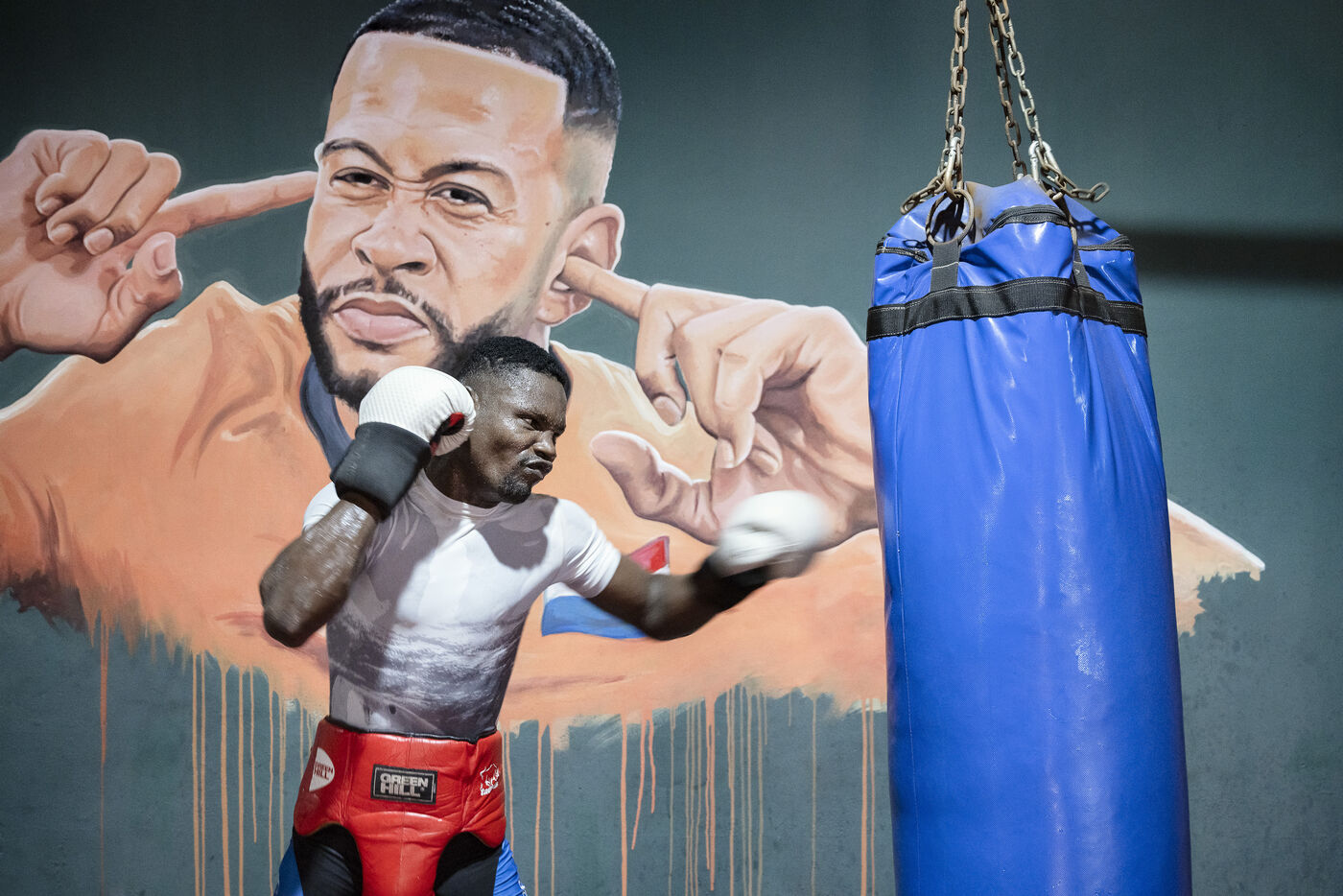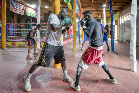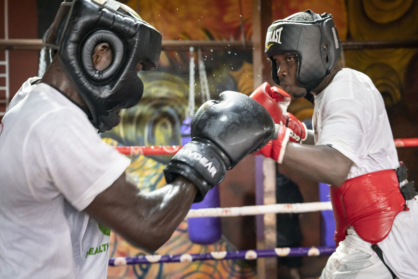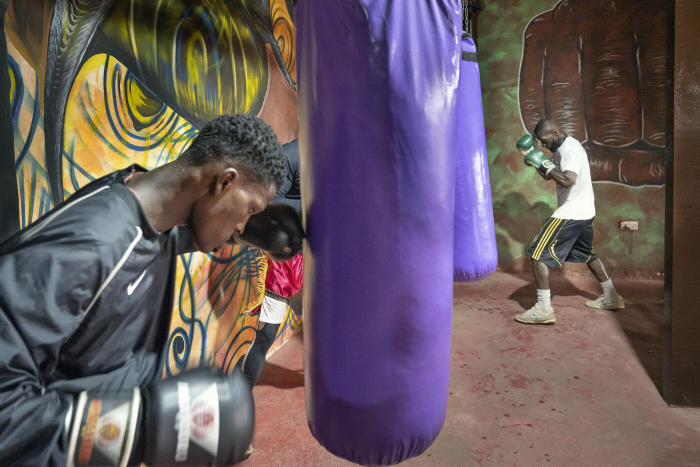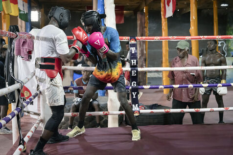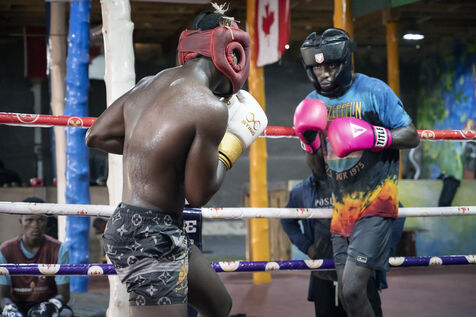 Illustrations de boxeurs à l'entrainement dans une salle de la capitale ghanéenne.