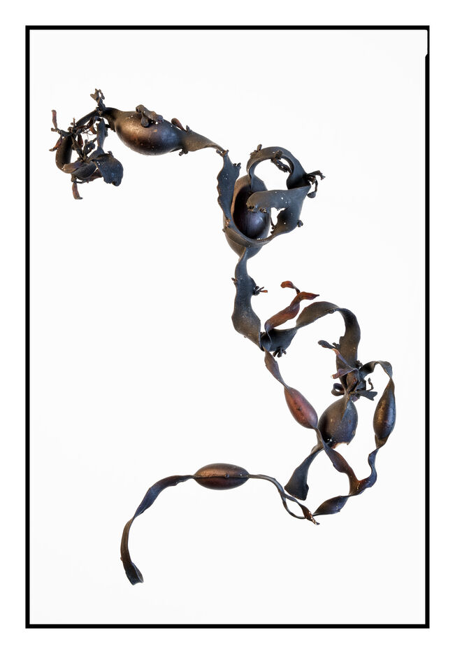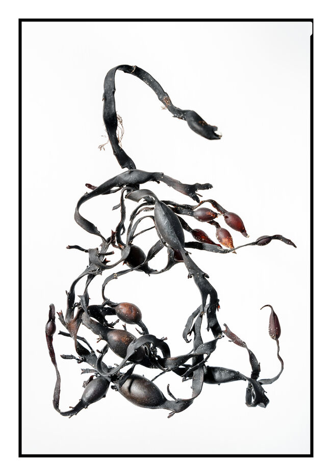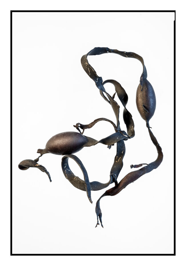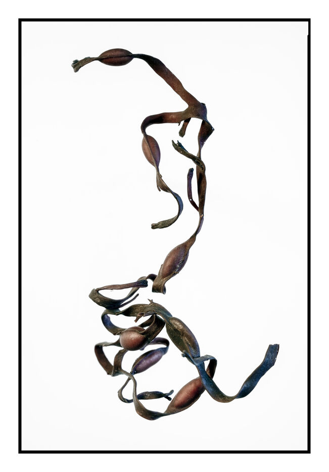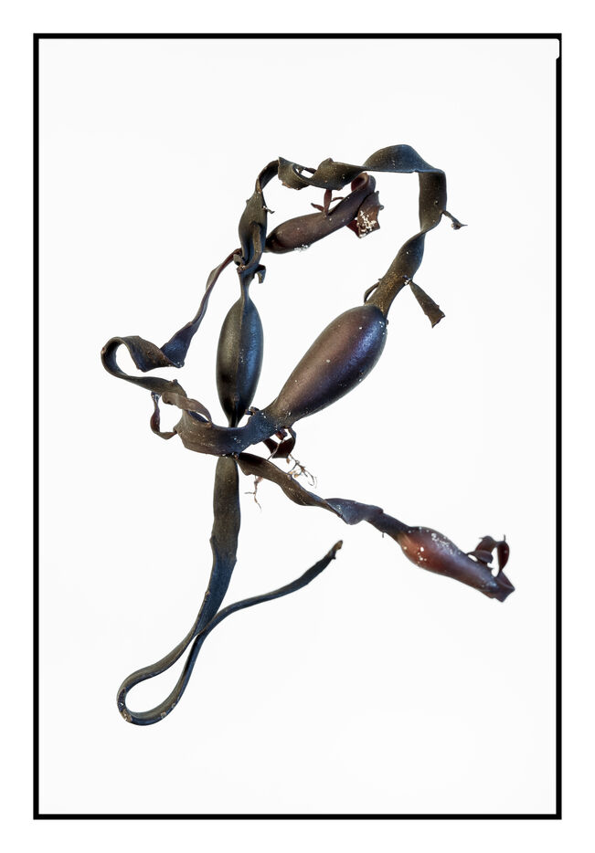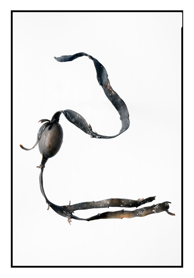 Portraits de débris d'algues échouées sur la grève au bord de l'océan, leurs formes à la fois sophistiquées et simples évoquent les plus belles calligraphies, un étrange alphabet.