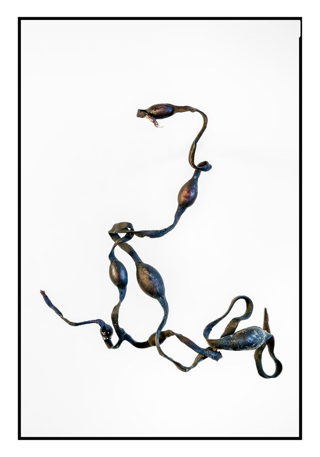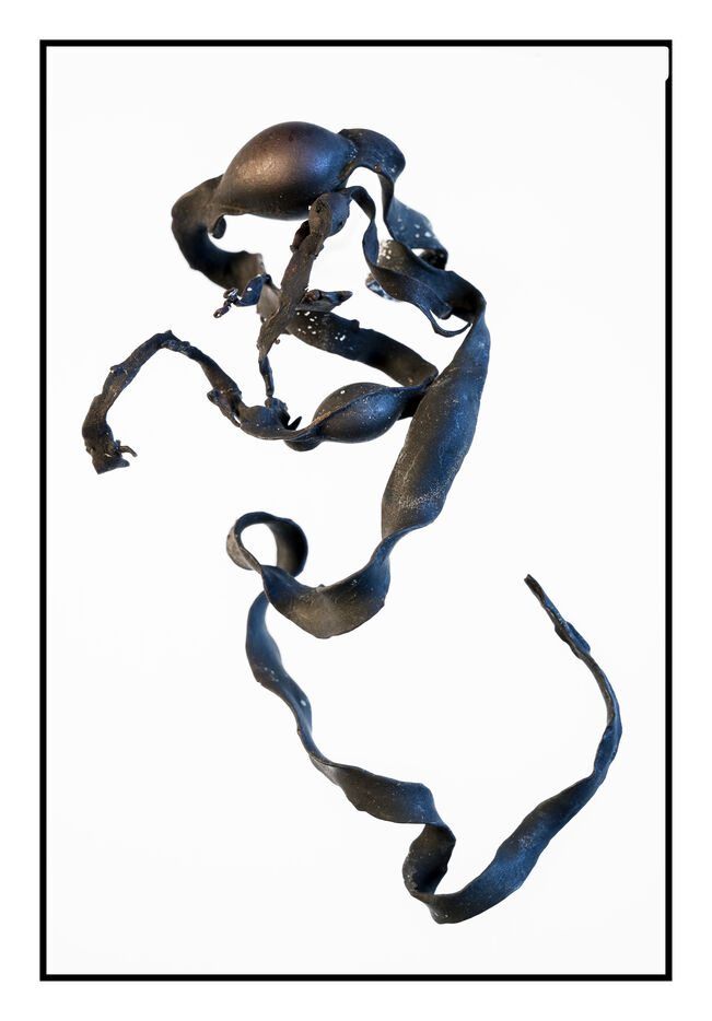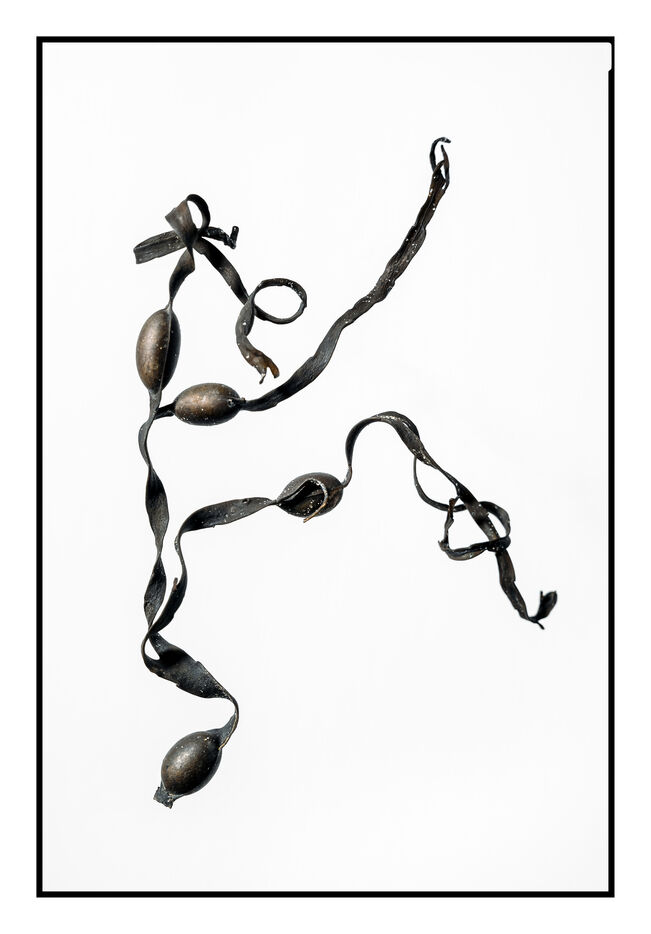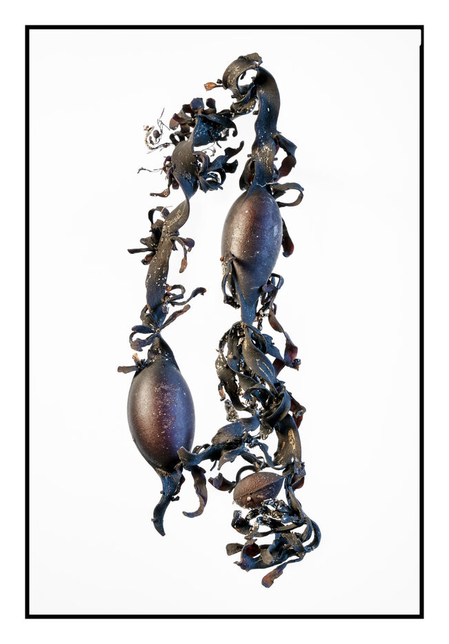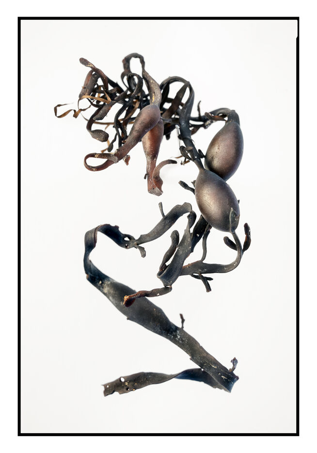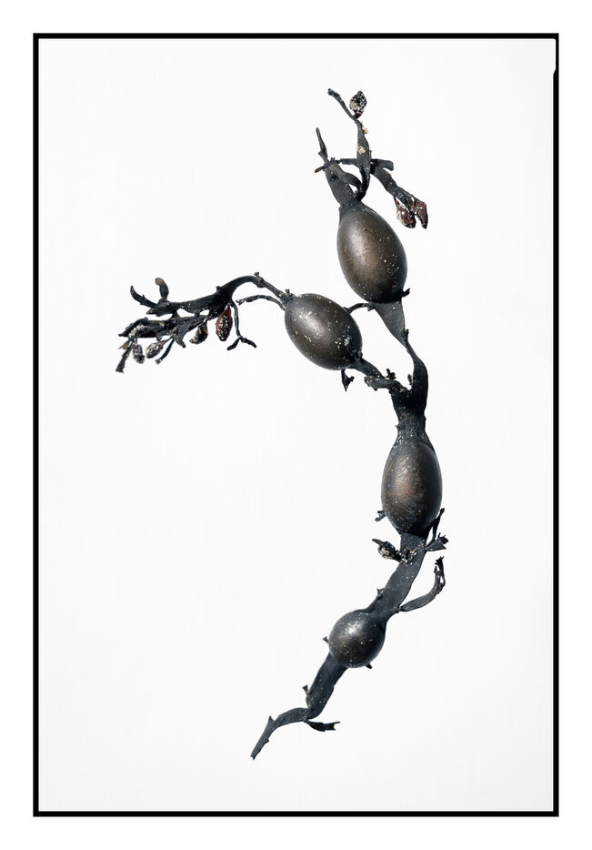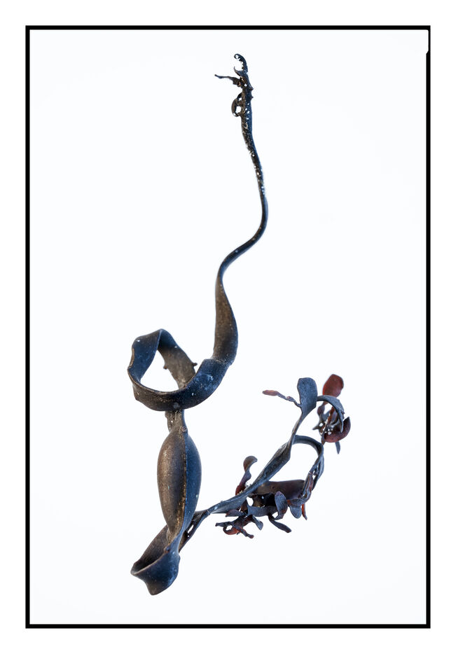 Portraits de débris d'algues échouées sur la grève au bord de l'océan, leurs formes à la fois sophistiquées et simples évoquent les plus belles calligraphies, un étrange alphabet.