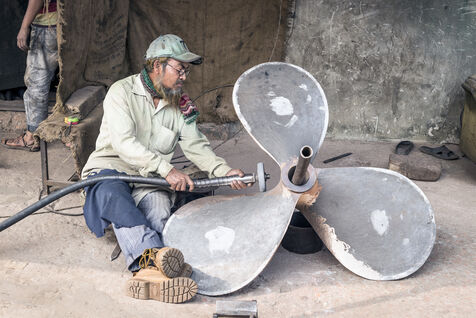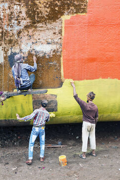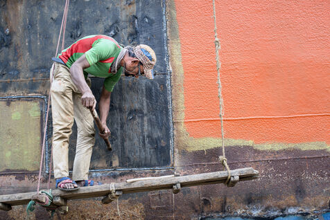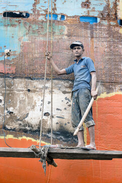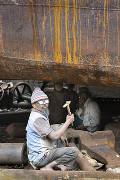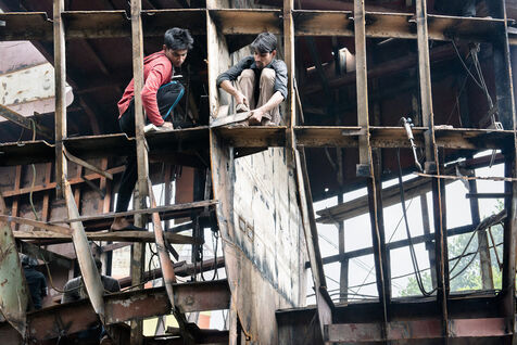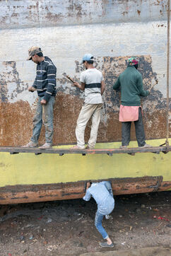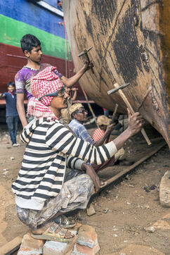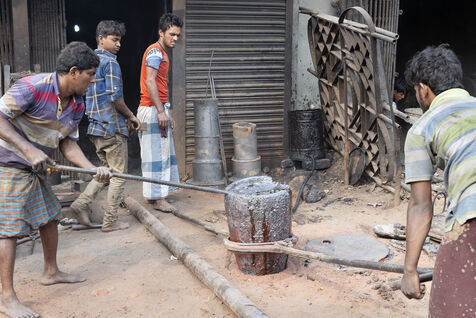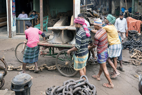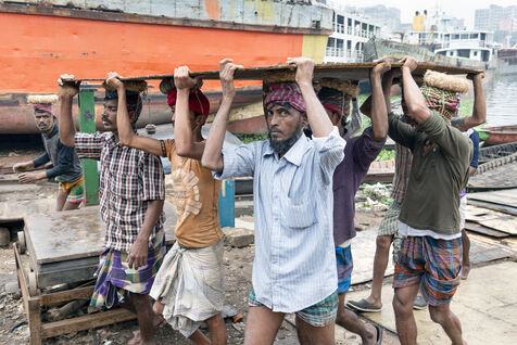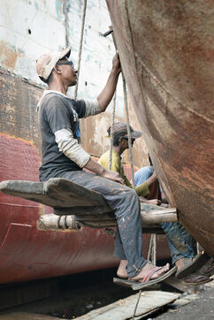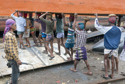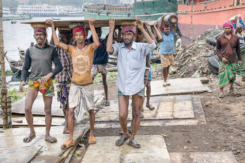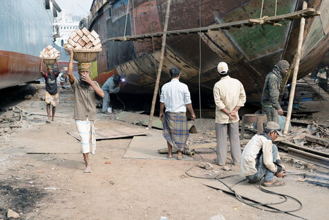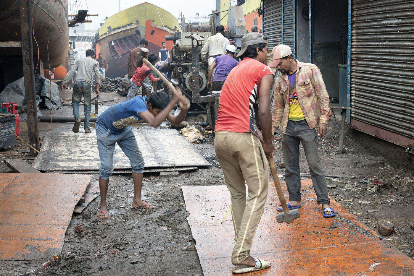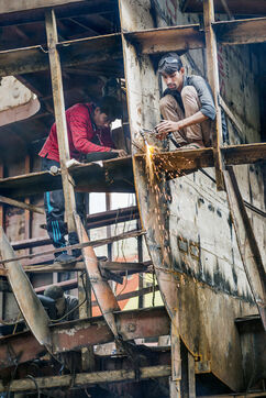 The country's abundant and cheap labor force means that work here is essentially manual. The workers, often day laborers, are exposed to all kinds of injuries, breathe toxic dust and fumes, and carry heavy loads.