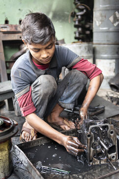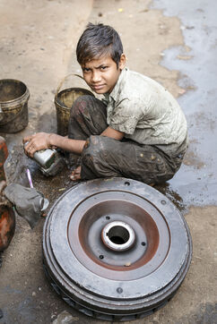 La main d'oeuvre abondante et bon marchée du pays, fait que le travail y est essentiellement manuel. Les ouvriers, souvent journaliers, sont exposés à toutes sortes de blessures, respirent des poussières et émanations toxiques, portent de lourdes charges.