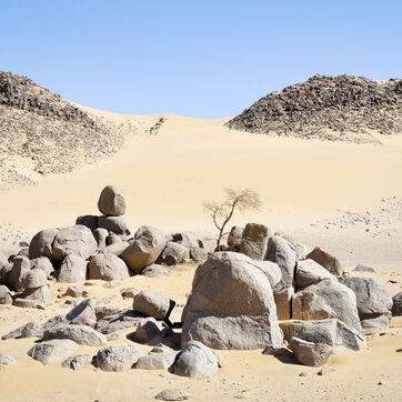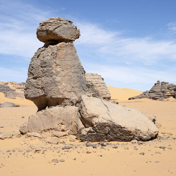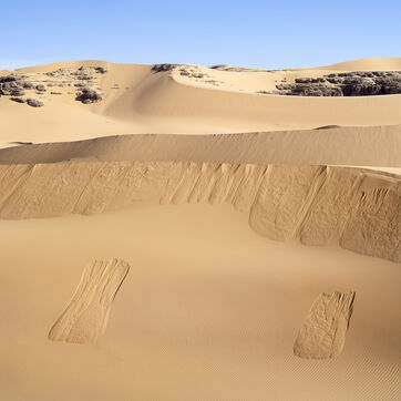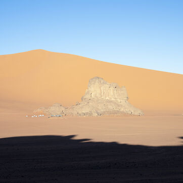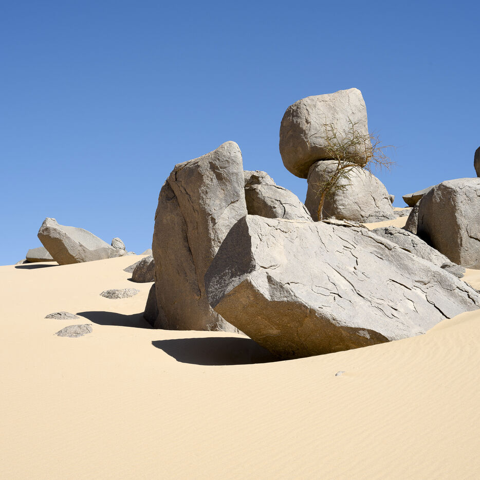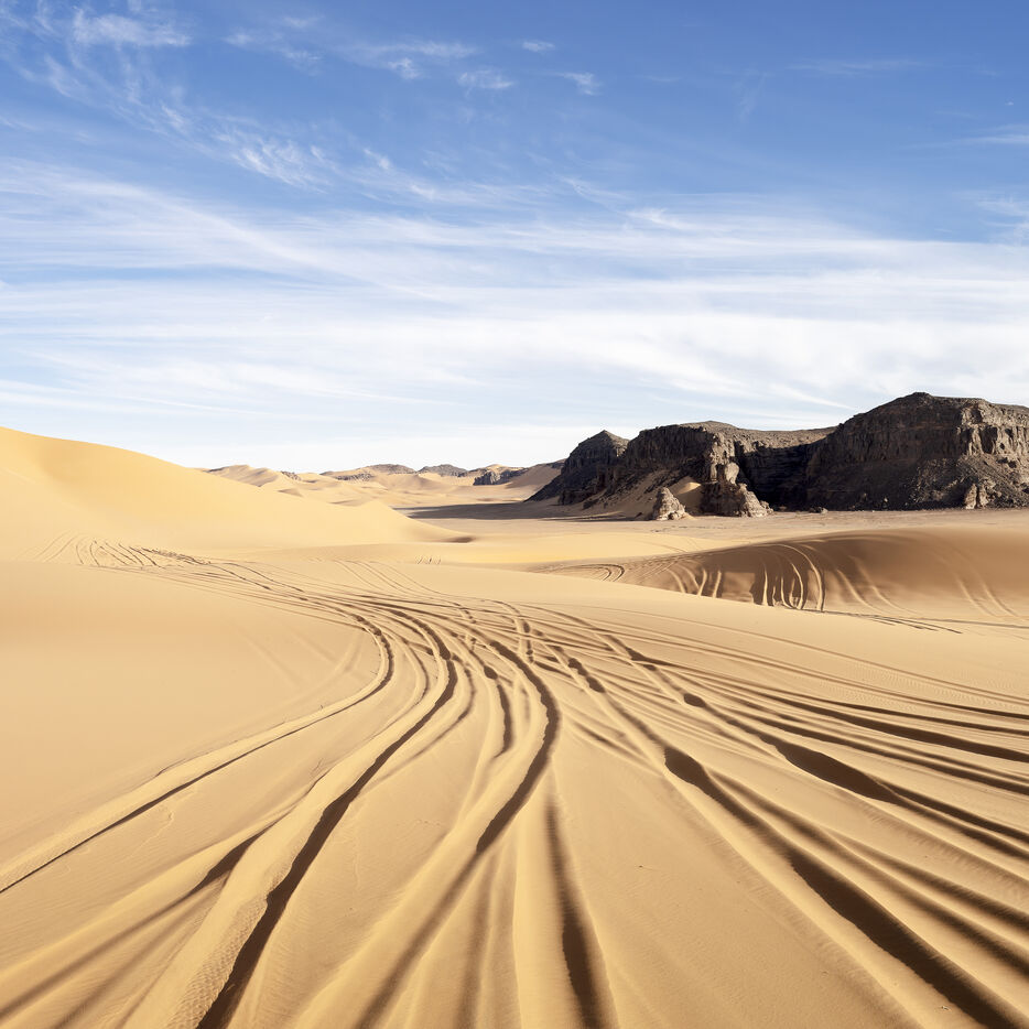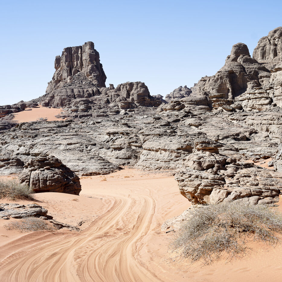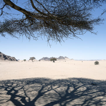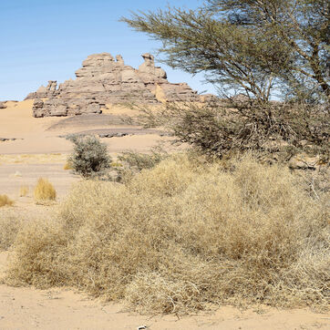 There are no permanent water points in this area of several hundred square kilometers, preventing anyone from settling there. The Algerian government has drilled there but never found any water. Yet rainfall can be torrential, as evidenced by the wide beds of some of the wadis, the whitish sediments that line their bottoms and the shrubs and bushes that struggle to grow. The water surges for a few hours, a few days at most, before disappearing into the region's sandstone soil.