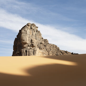 La Tadrart Rughat"la petite montagne rouge" en langue Tamahaq, le Touareg local, fait partie de ce parc et se distingue par la couleur rouge orangée de son sable et de ses roches.