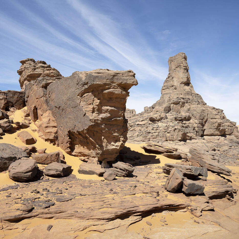 On the edge of the Algerian Sahara, close to the Libyan and Nigerian borders, lies the Tassili Cultural Park, considered the world's largest open-air museum for its countless rock paintings and engravings. It is a Unesco World Heritage site.