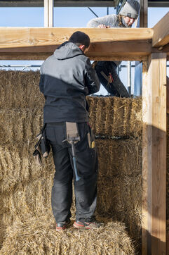 Installée près de Poitiers, la Scop Bois et Paille construit des maison écologiques en ossature bois avec des murs en paille. Ce type de maison très bien isolée, dite "passive", produit théoriquement plus d'énergie qu'elle n'en consomme.
