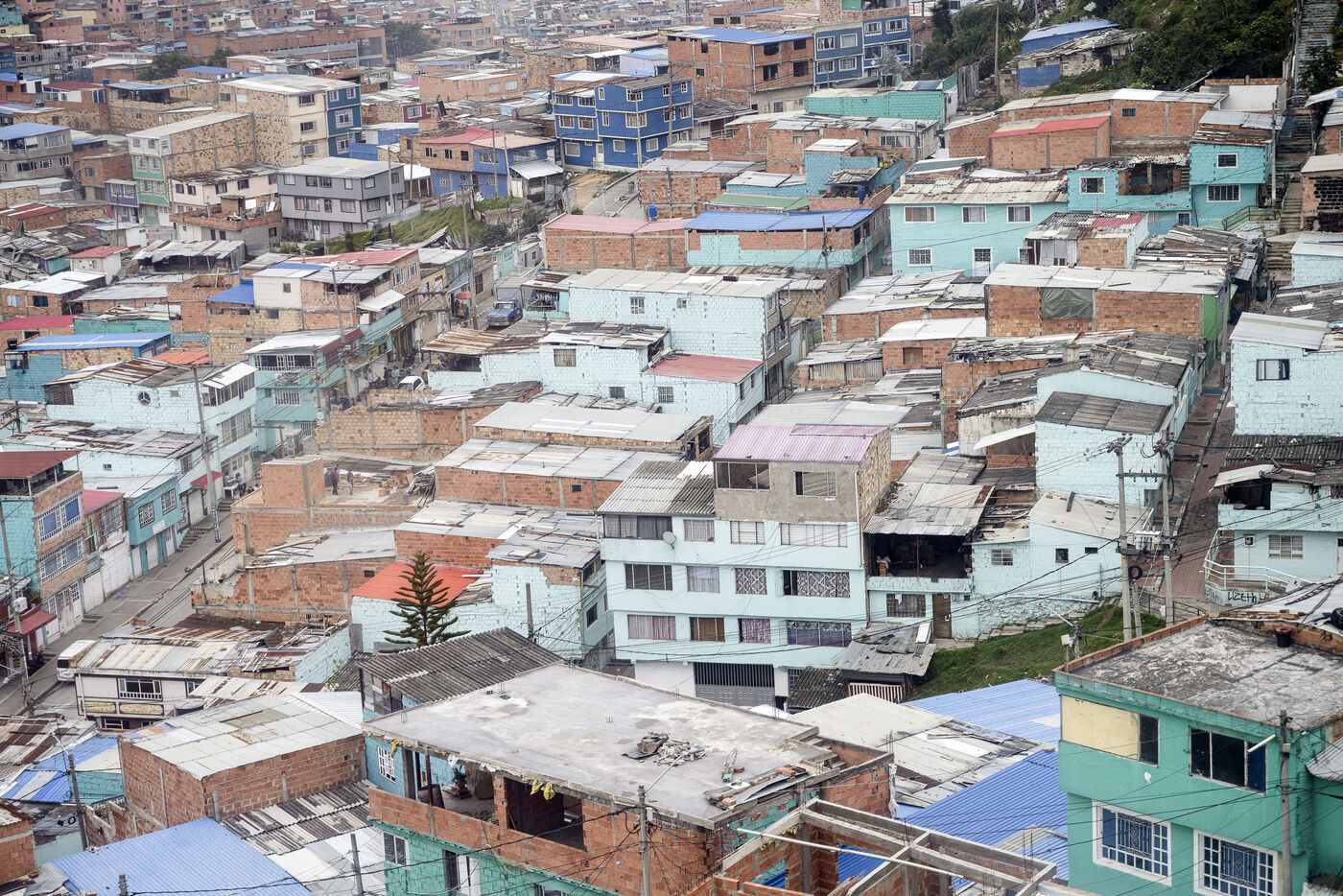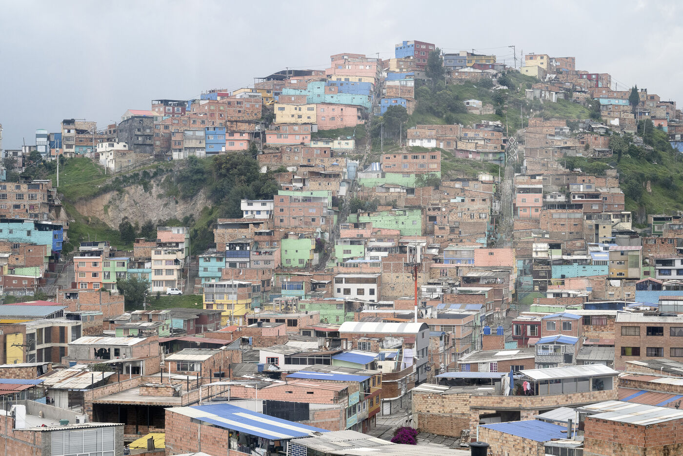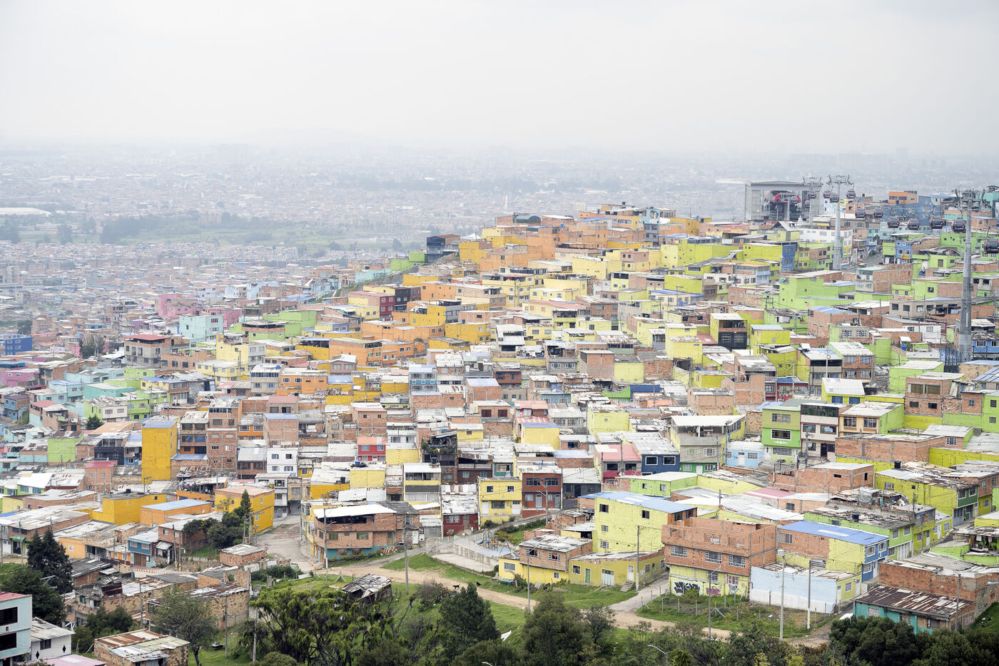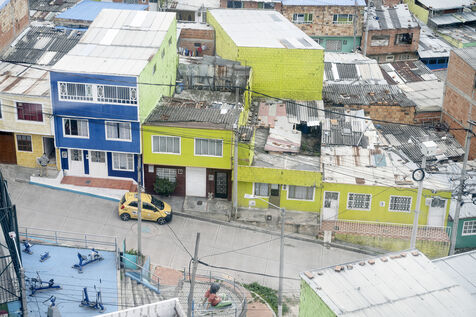 Nestled in a valley in the Andes, Bogotá stretches for some 30 kilometers. On its outskirts, the poorest have built shantytowns that climb the steep slopes of the mountains, of which Ciudad Bolivar is an example, with over 600,000 inhabitants.