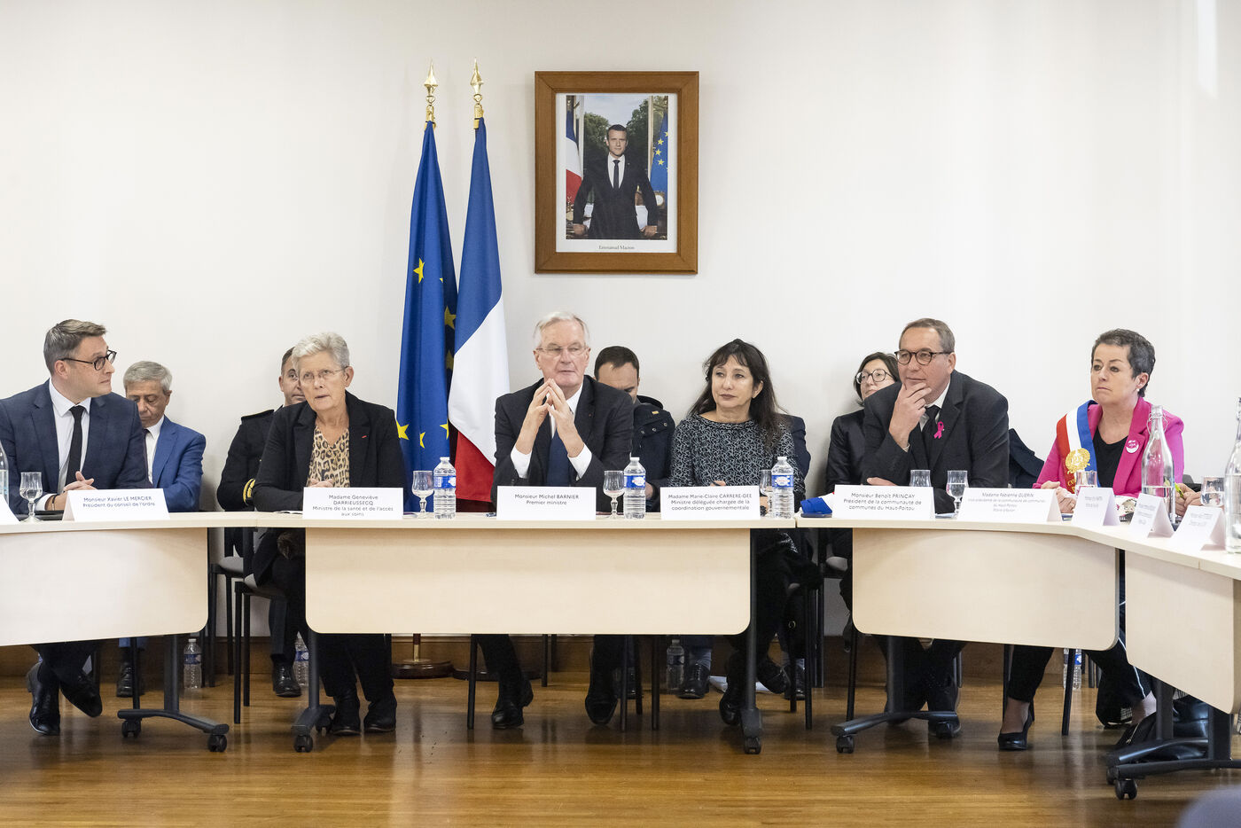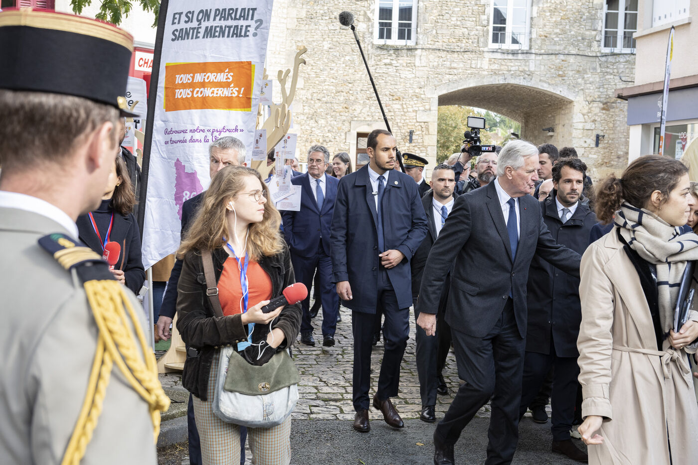 LE PREMIER MINISTRE MICHEL BARNIER ET LA MINISTRE DE LA SANTE GENEVIEVE DARRIEUSSECQ RENCONTRENT LES SOIGNANTS EN SANTE MENTALE A POITIERS
