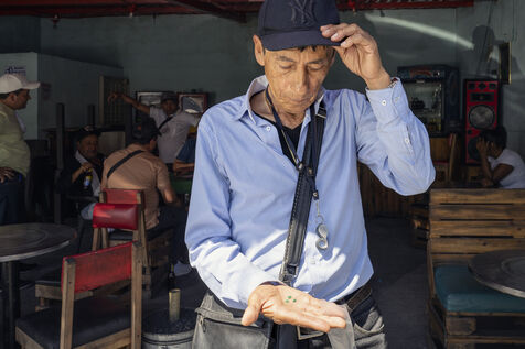 Today, the state is trying to control the market, and the largest and most productive mines, such as Muzo, are operated by international groups. However, there are dozens of smaller mines that are more difficult to control, using traditional methods that require arduous and dangerous manual labour, as here in Coscuez, near the small mountain town of Otanche, where almost all the families make a living from extracting or trading in emeralds.