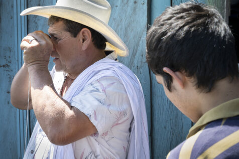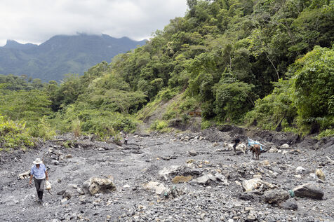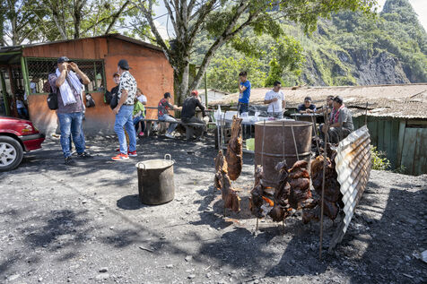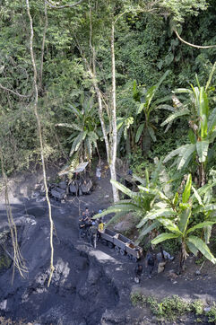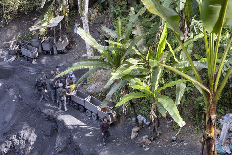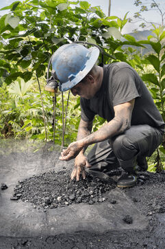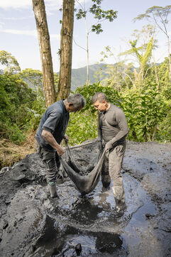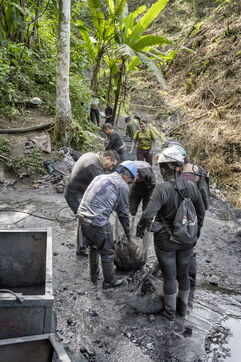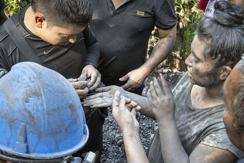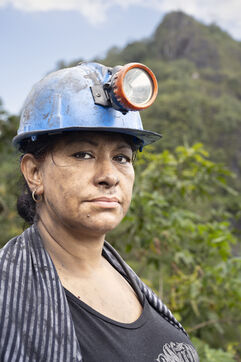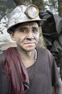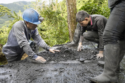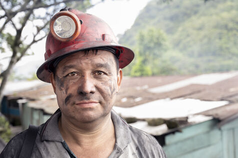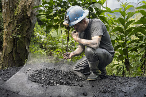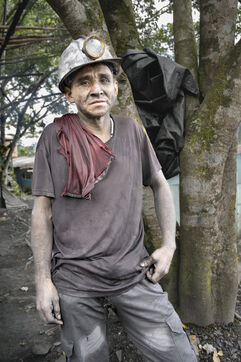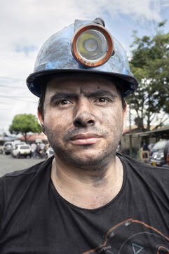 In this tropical zone, 200 kilometres north of Bogotá, it's hot and humid. The temperature in the mines is over 35 degrees and the humidity level is generally 90%. The miners finish their work exhausted, dehydrated and black with dust, which also penetrates deep into their lungs.
