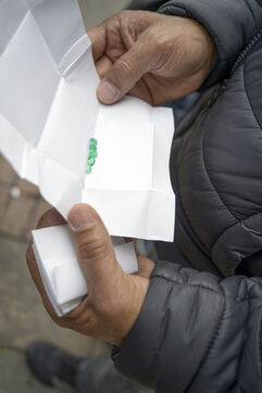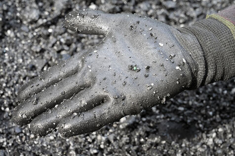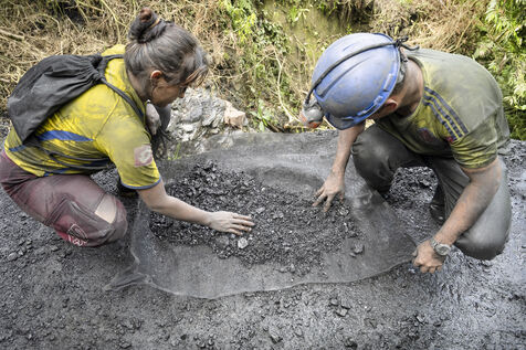 In small-scale operations, work is carried out with pickaxes, shovels and crowbars, sometimes using explosives and jackhammers. Men and women dig deep into the mountains, extracting and hauling away tonnes of black shale in search of the lighter veins of calcite that house the precious stones.