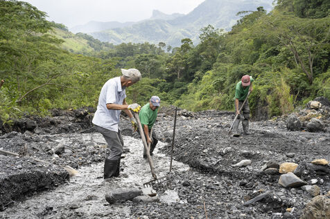 Beaucoup de guaqueros, les « chercheurs de trésor », travaillent de façon informelle, sans salaire, échappant ainsi aux radars de l’État. On les trouve dans les mines clandestines, fouillant les sables des rivières ou les graviers rejetés par l’extraction, tels des forçats.