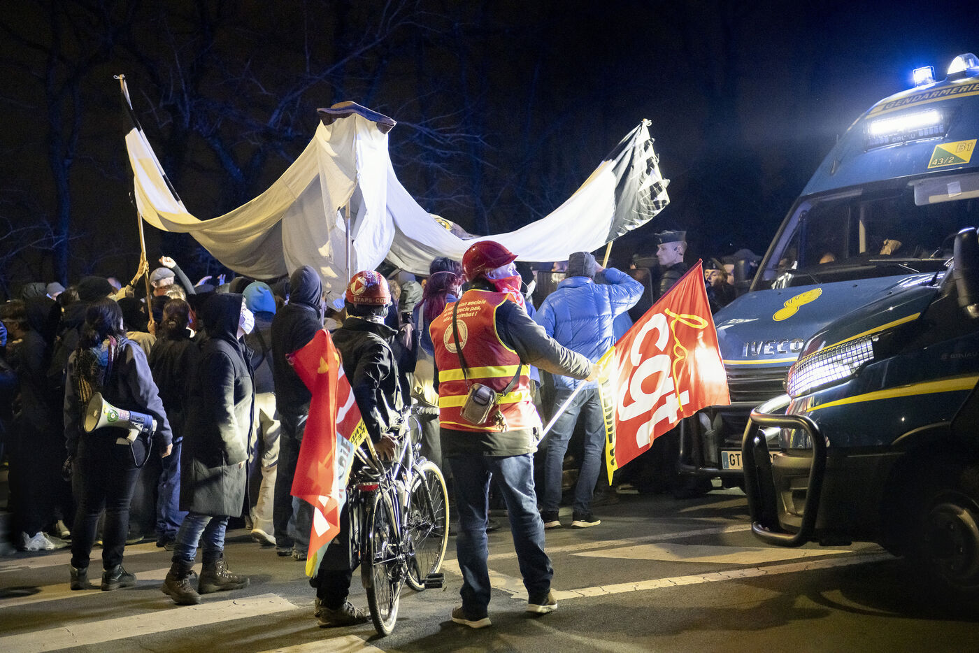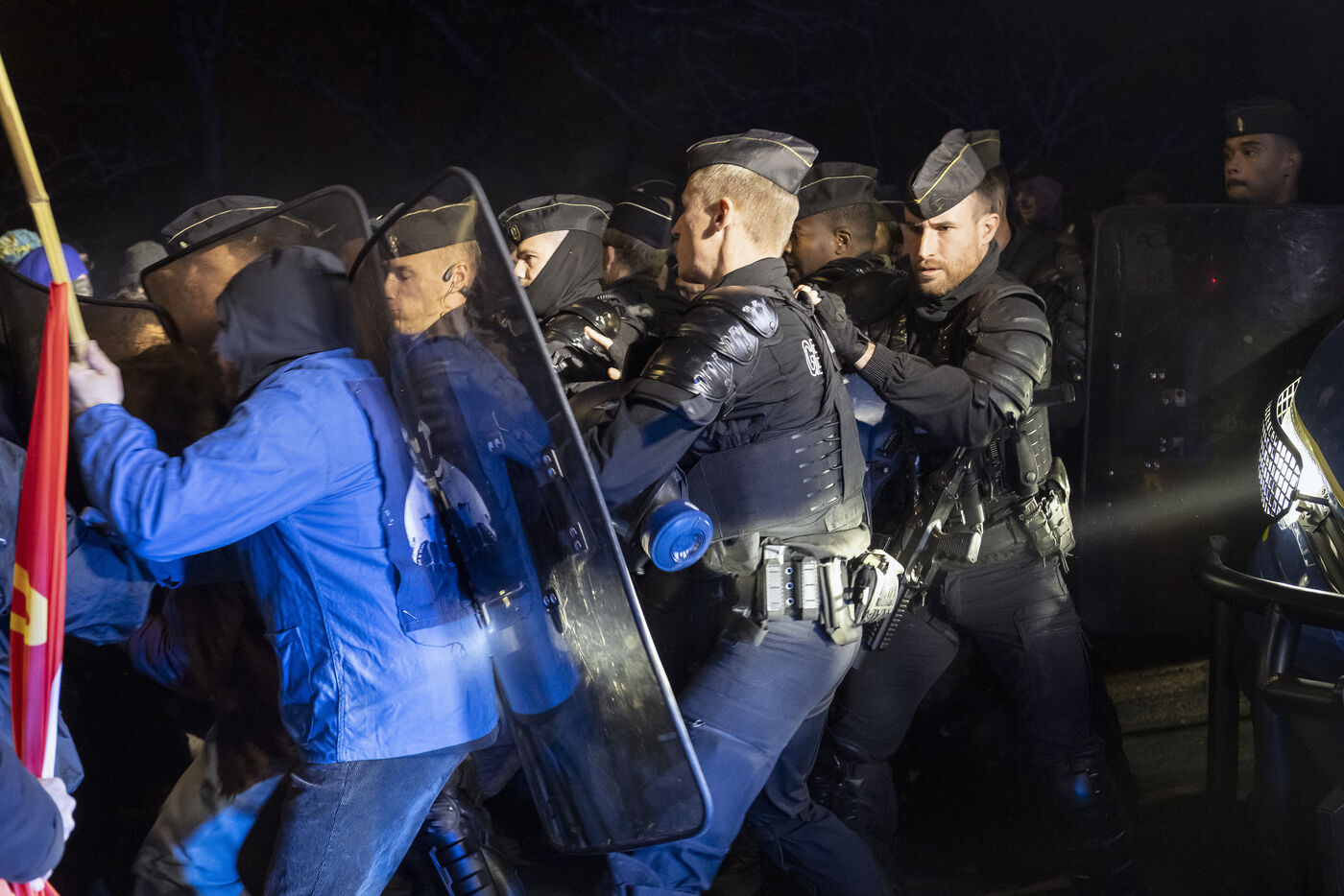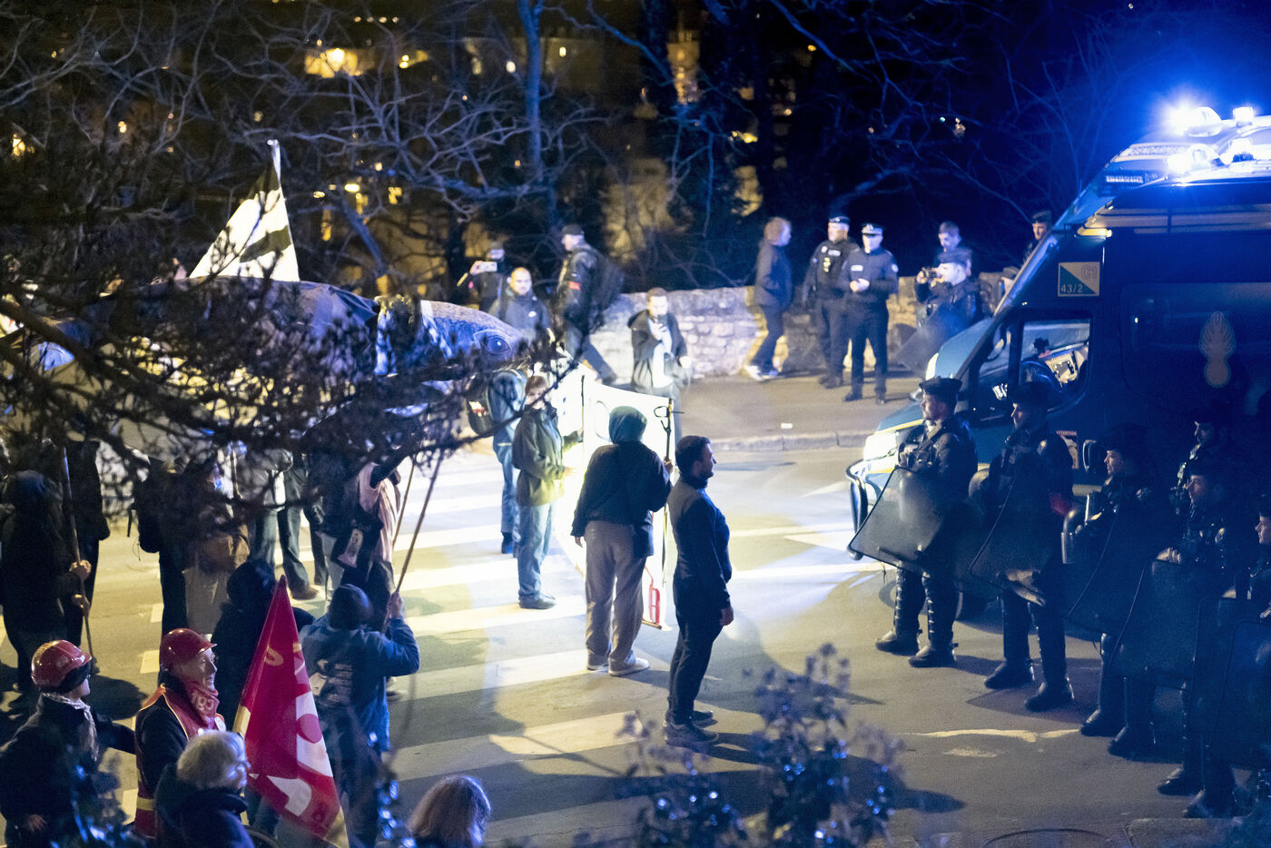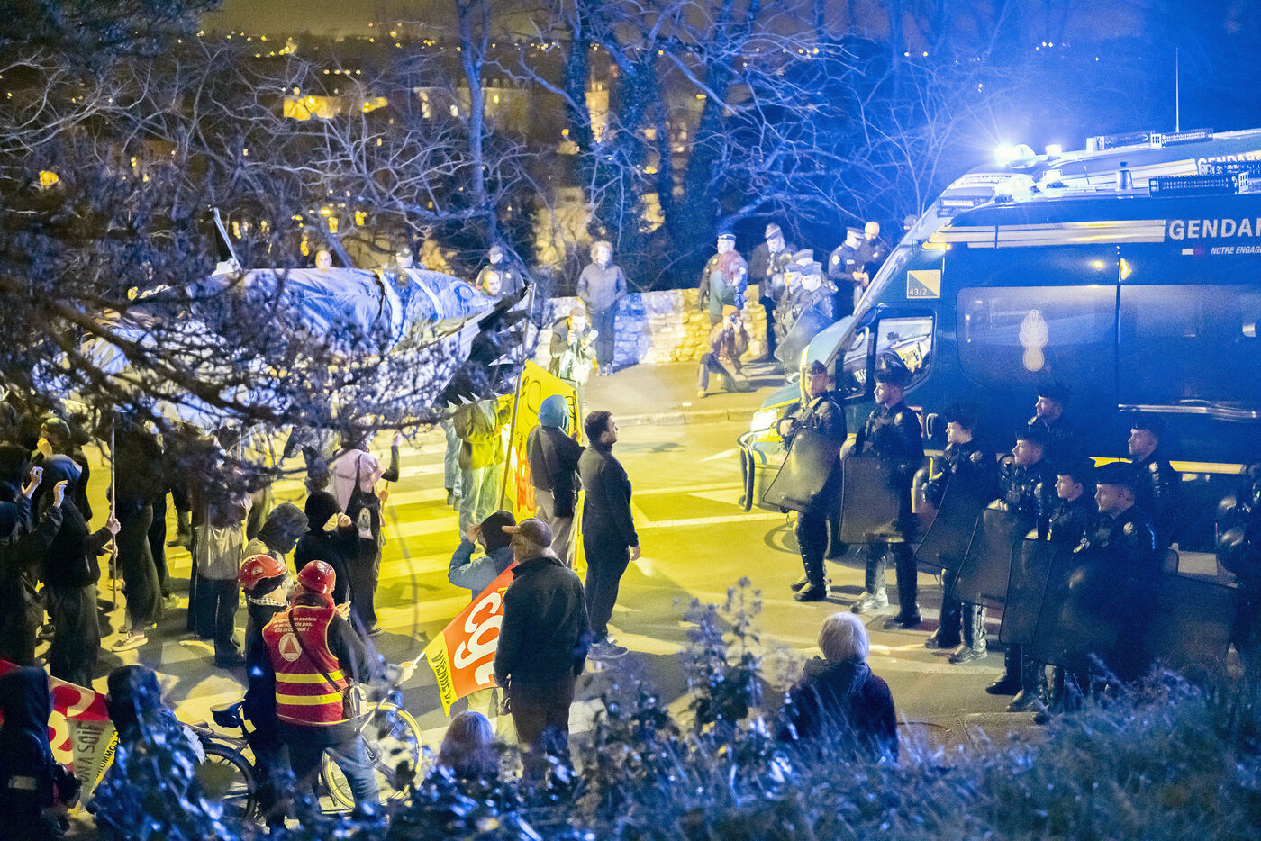 Around 400 demonstrators gathered in Poitiers for the second anniversary of the Sainte Soline confrontation over mega-basins and the management and sharing of water resources by agriculture. The calm demonstration became tense as it approached a military barracks protected by large numbers of police.