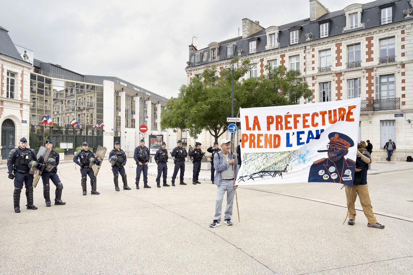 Around 300 demonstrators were present, including Bassines Non Merci, Greenpeace, Extinction Rebellion, the Confédération Paysanne, and political parties such as the Ecologists and La France Insoumise.