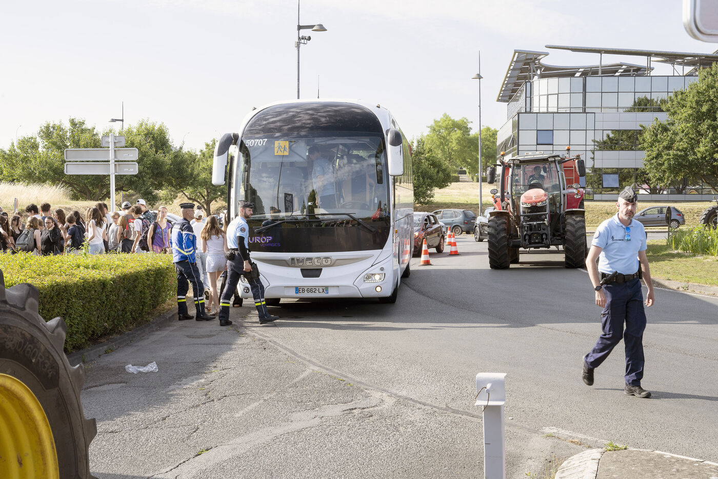 Farmers from the FNSEA (National Federation of Forestry and Forestry), the Rural Coordination (CR), and the Young Farmers (JA) are blocking the entrances to Futuroscope to protest the water use restrictions that may be imposed on them following studies by the HMUC (Hydrology, Environments, Uses and Climate).