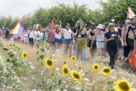 Des centaines de personnes venues de toute la France participent à l'évènement dans le but de promouvoir les droits, la visibilité et l'acceptation des personnes LGBTQIA et + en milieu rural.