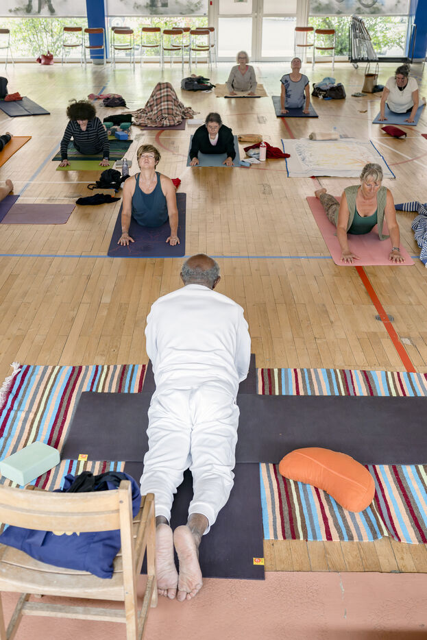 Bel exemple de longévité, à 90 ans, Babacar Khane continue d'animer des stages de yoga en France et à l'étranger. Celui de Poitiers dure une semaine. Il est ici question de prendre soin de soi, de respiration, et bien sûr de postures permettant de conserver une bonne forme physique et psychique.