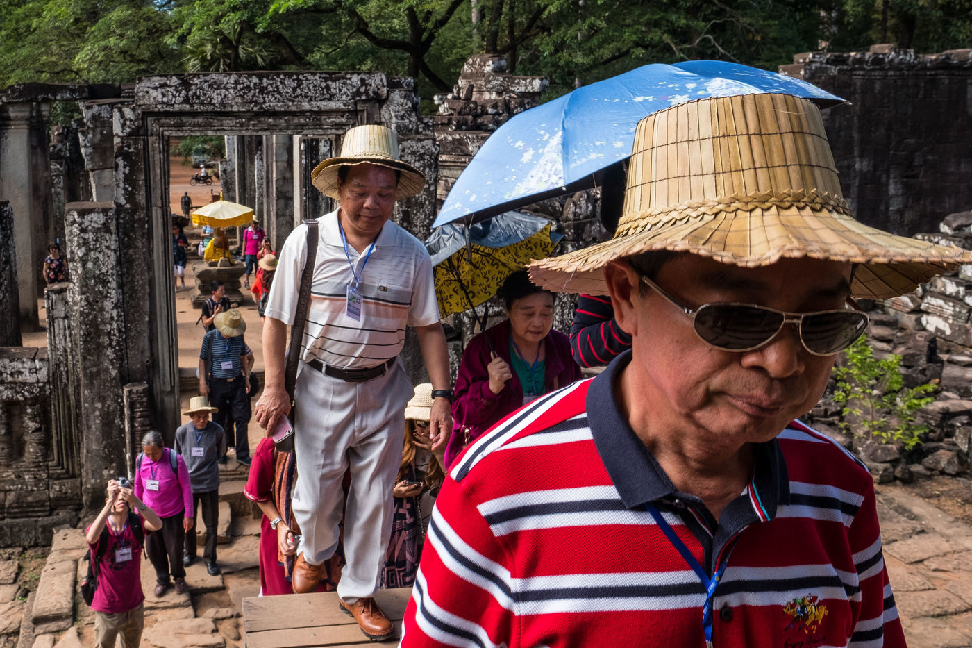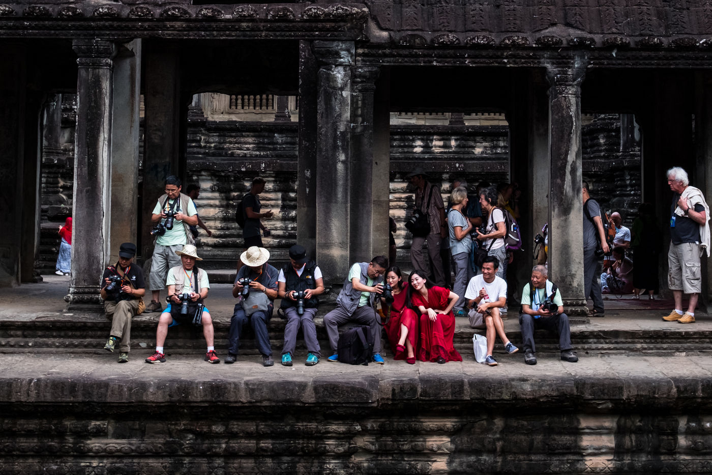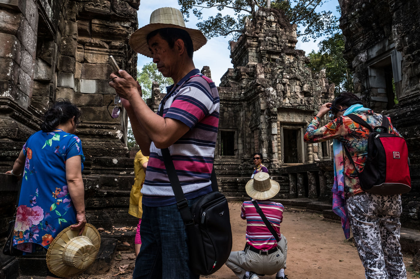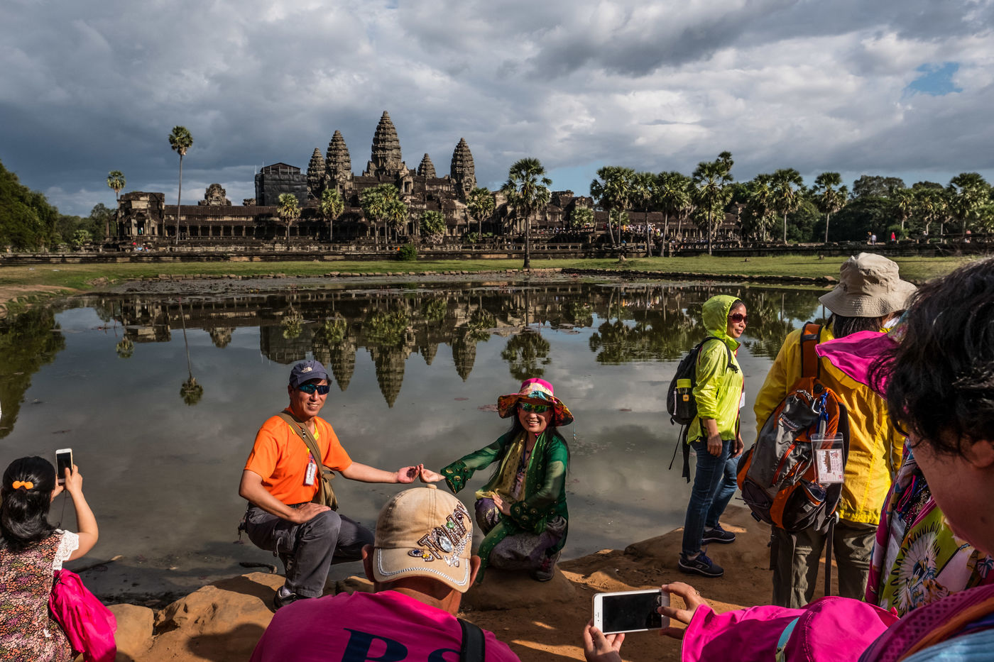 À cette foule s'ajoutent les Cambodgiens qui tentent de profiter de cette manne financière en vendant des boissons et en dirigeant les visiteurs vers les magasins de souvenirs. Leurs enfants, plutôt que d'être à l'école, sont mis également à contribution et vendent cartes postales et autres babioles.