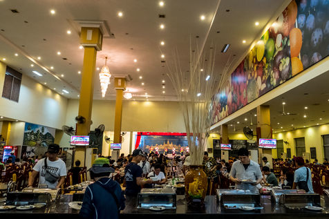 A Siem-Reap, la cité qui accueille les voyageurs et touristes de Angkor, le centre-ville a été complètement transformé pour devenir un royaume de la fête, dont l'artère principale « pub street » voit bars et restaurants courtiser les visiteurs d'un week-end.