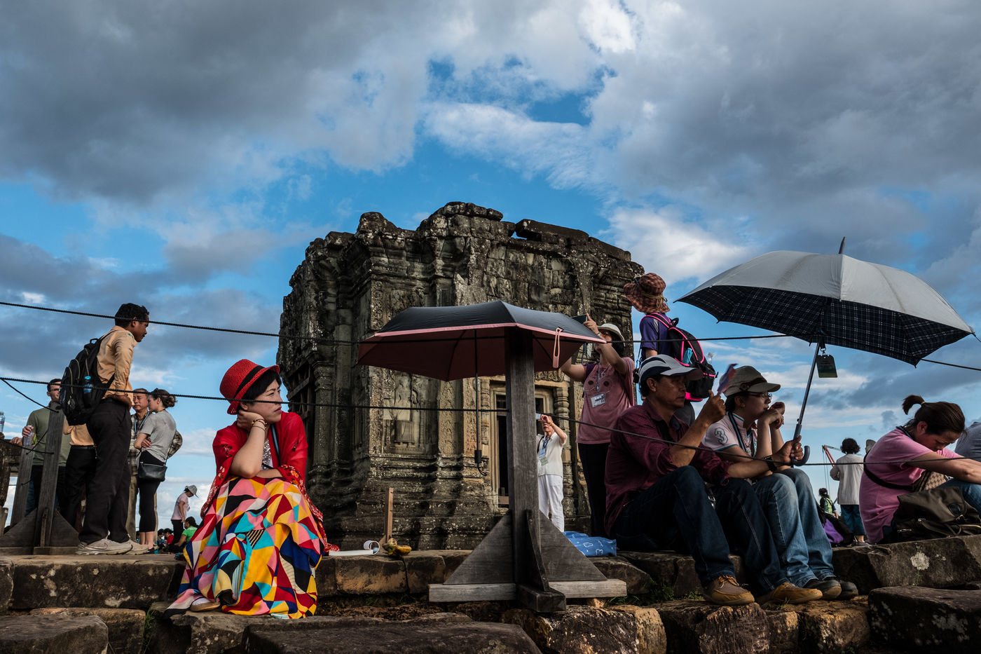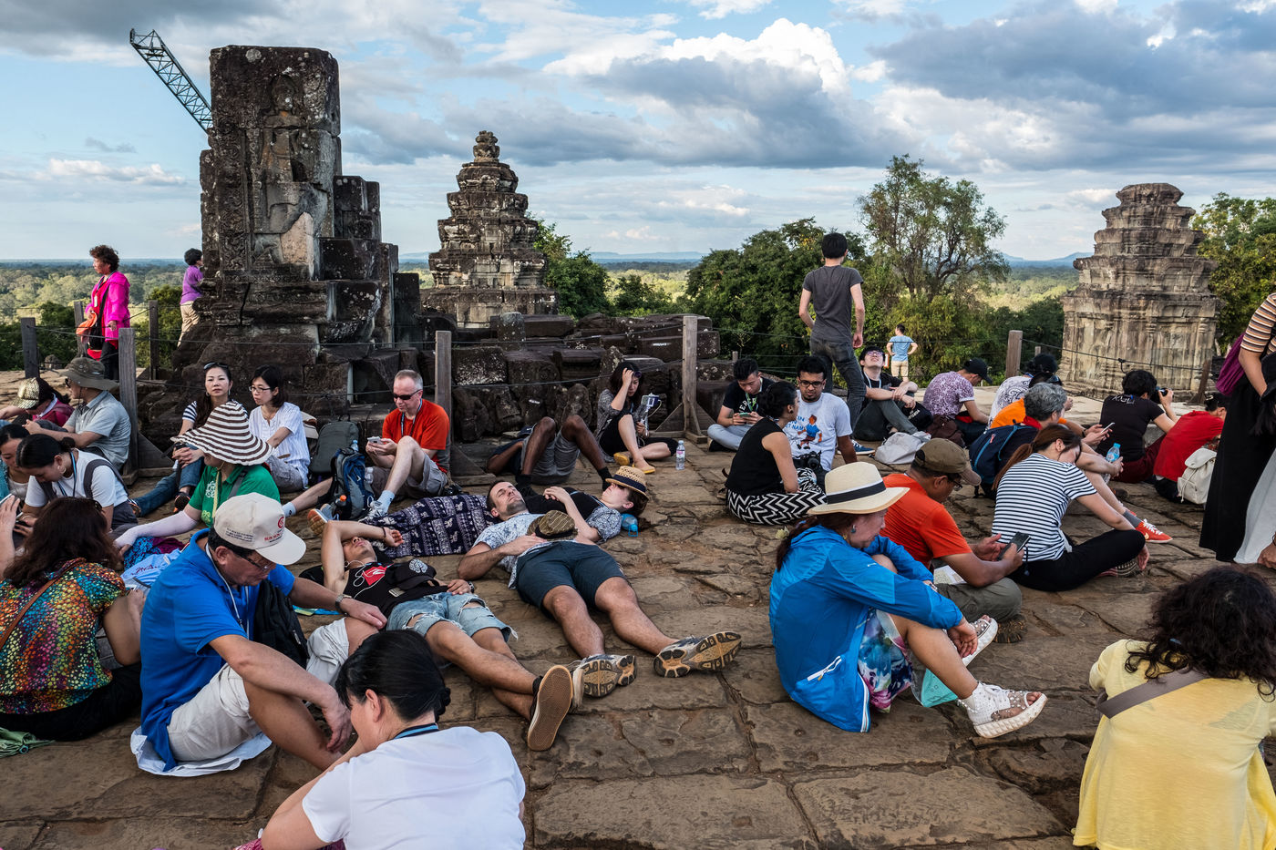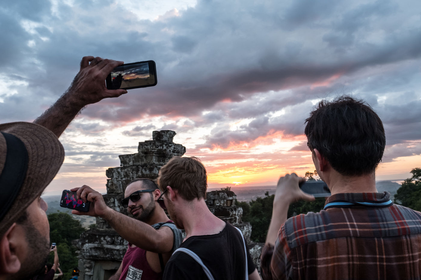 La prolifération des bus et tuk-tuks qui défilent entre les temples a provoqué une hausse majeure de la pollution, tandis que la poésie des lieux a laissé place à une armée de bâtons à selfies en quête d'un coucher de soleil.