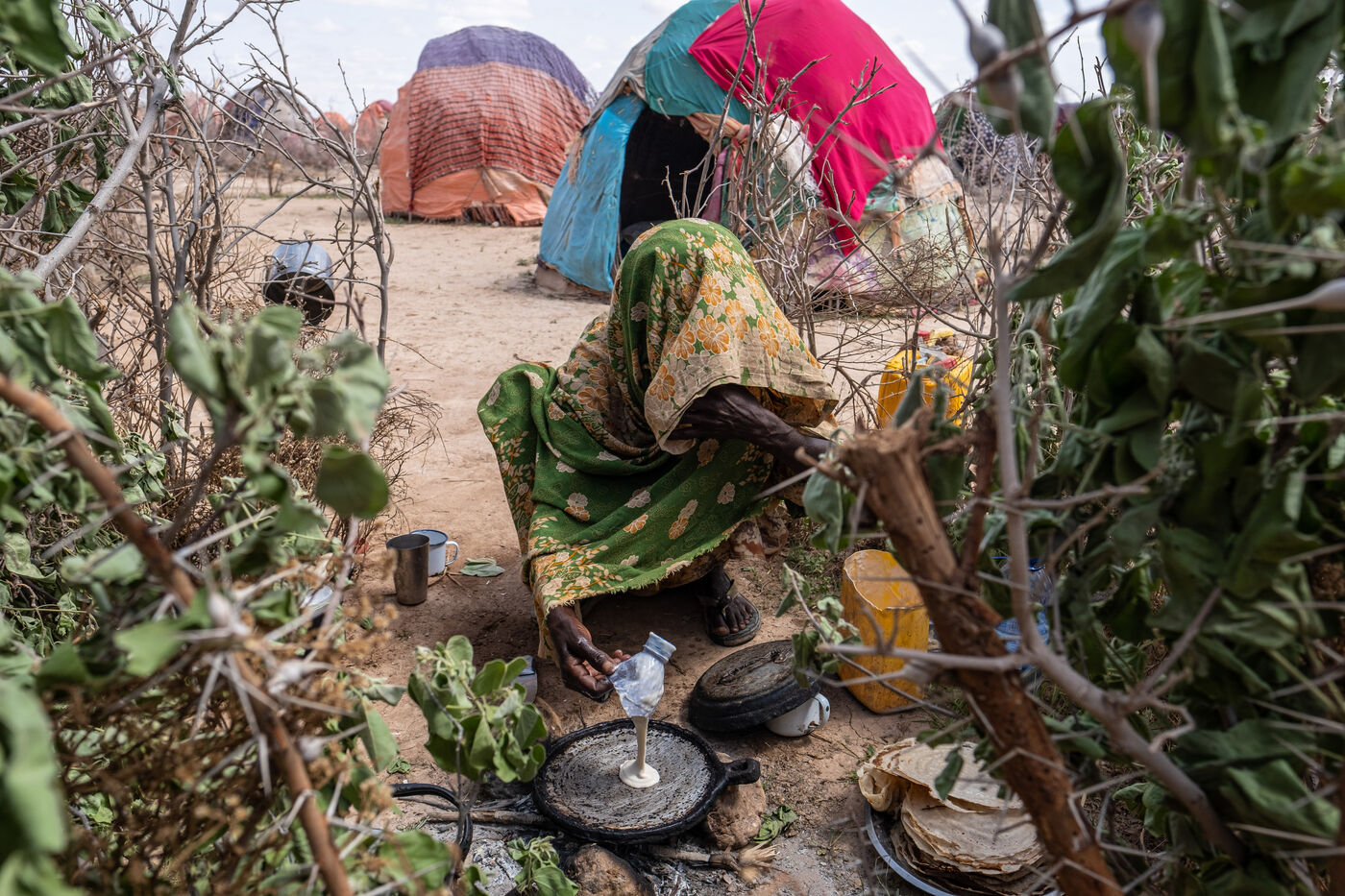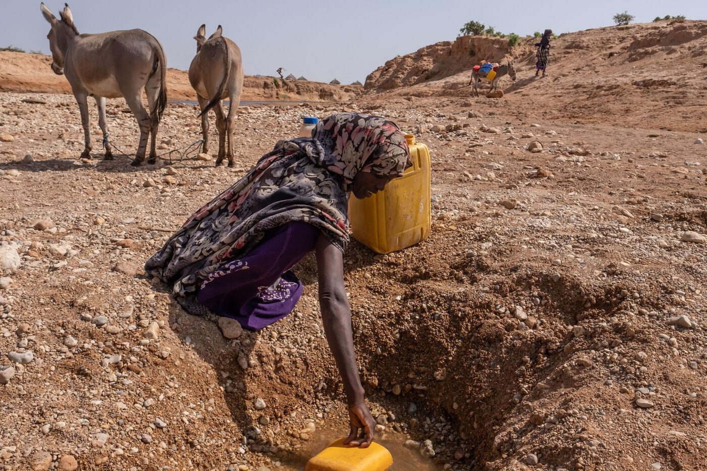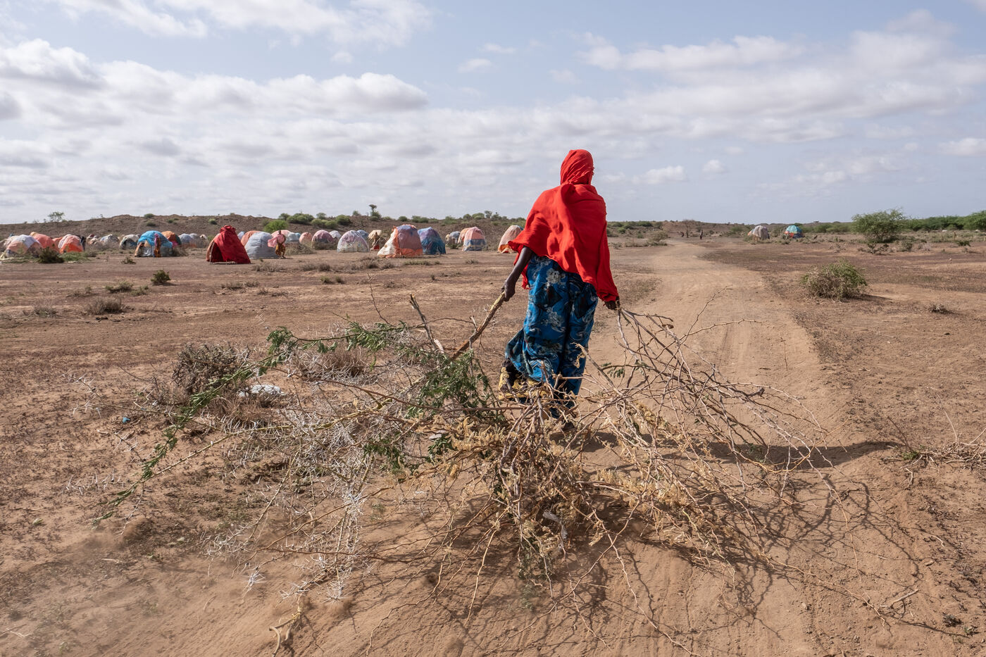 Les communautés nomades de la Corne africaine ont vu ces dernières années un changement climatique de plus en plus violent et consécutif affectant complètement leur mode de vie sociale, économique et sanitaire. La sécheresse sévissant en 2022 est considérée comme la plus violente depuis 30 ans, elle vient porter un coup de grâce à ceux qui possédaient encore leurs animaux. Le pastoralisme nomade repose économiquement et socialement sur le nombre de chèvres, de vaches ou de chameaux que les familles possèdent, or la sécheresse vient de tuer plus de 3,5 millions d?animaux en 2022 par le manque de verdure et d'eau rendant la vie nomade impossible. Depuis plusieurs années, les camps de réfugiés climatiques augmentent et s'agrandissent. Le fardeau repose principalement sur les femmes qui portent cette crise à bout de bras. Beaucoup d?hommes abandonnent en effet leurs familles par honte et déshonneur n?ayant plus de bétail (vital pour la vie nomade). Les femmes se retrouvent donc isolées et viennent rejoindre les milliers de familles des camps environnant les villes. Elles doivent faire face au manque de nourriture et des eaux du sol contaminées. L?aide internationale étant également fragilisée par la guerre en Ukraine. Depuis plusieurs années, la Somalie, l?Éthiopie et le nord du Kenya voient s'éteindre la vie nomade brutalement et dans des conditions humanitaires violentes en conséquence directes du changement climatique mondial.
