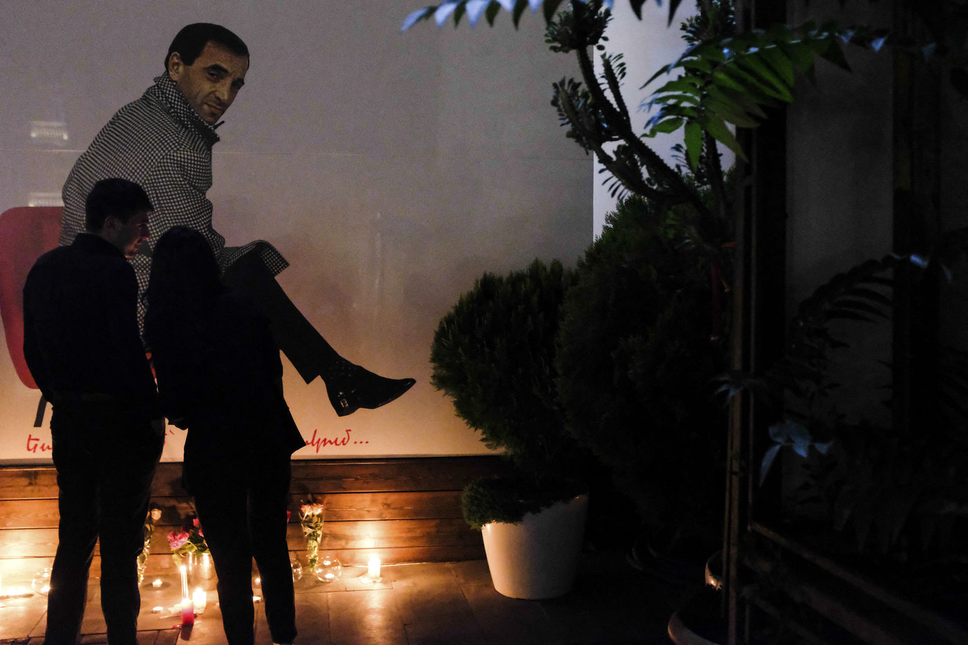 Le jour du centième anniversaire du génocide Arménien, au Tsitsernakabert (mémorial de Yerevan), Charles Aznavour est dans la tribune officiel.
