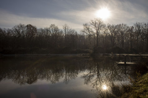 Depuis l'arrêt du confinement, les pêcheurs amateurs peuvent à nouveau pêcher dans les étangs de France. Indre, décembre 2020.