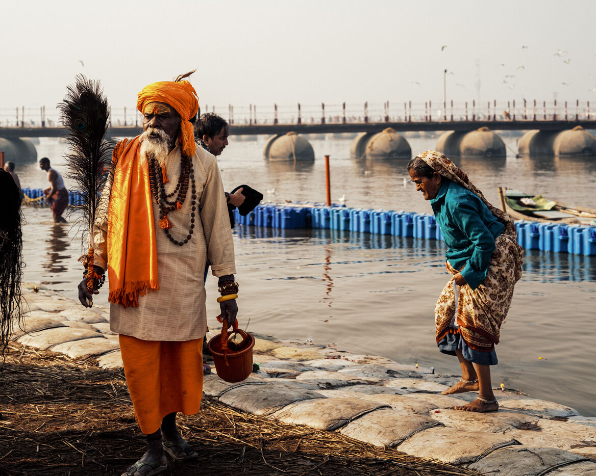 Every 144 years, the Maha Kumbh Mela transforms Prayagraj into an ephemeral city bigger than Paris, welcoming nearly 450 million pilgrims over 48 days. At the sacred confluence of the Ganges, the Yamuna and the mythical Sarasvati, the faithful come to immerse themselves in the holy waters to purify themselves and attain Moksha.