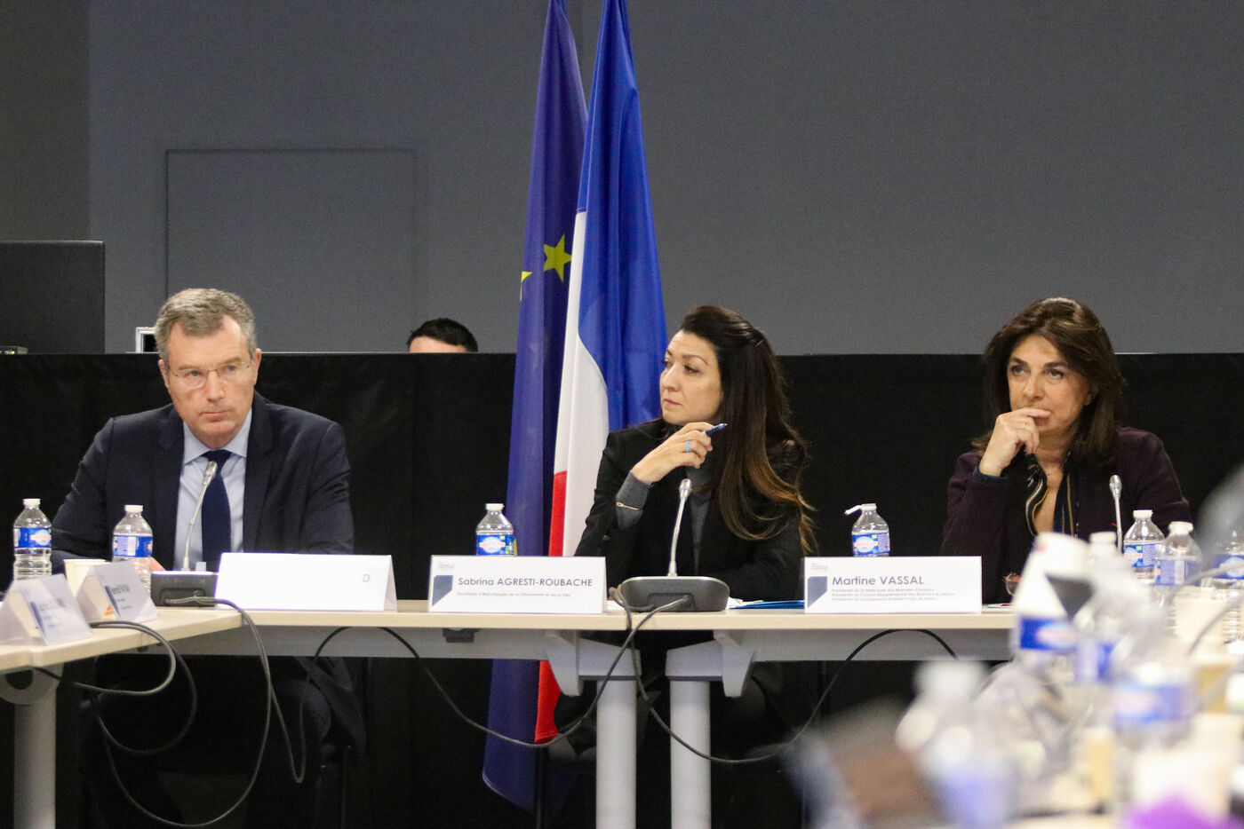 La secrétaire d'État chargée de la Ville, Sabrina Agresti-Roubache, la présidente du GIP mobilités et de la Métropole d'Aix-Marseille-Provence, Martine Vassal, ainsi que le maire de Marseille, Benoît Payan, étaient présents jeudi 14 mars au dépôt de la Rose à Marseille, pour participer au conseil d'administration du GIP mobilités.
