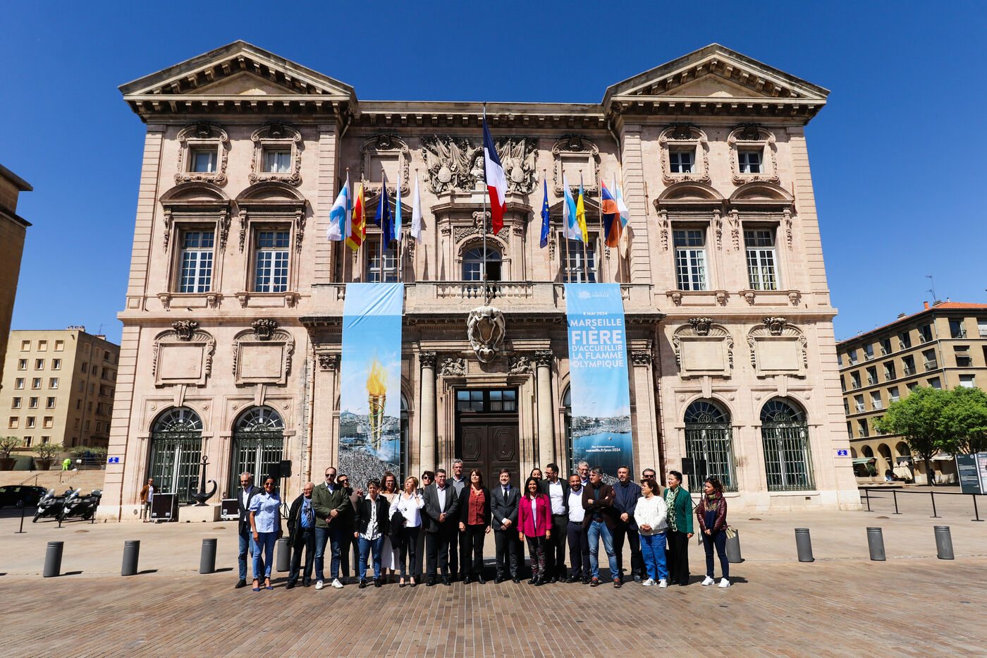 Alors que la Flamme Olympique a été allumée ce mardi 16 avril à Olympie avant d'entamer son voyage vers Marseille, le Maire de Marseille a dévoilé le nouvel habillage de l'Hôtel de Ville pour le 8 mai prochain. Date qui marquera l'arrivée de la flamme Olympique sur le territoire Français pour les Jeux Olympiques et Paralympiques de Paris 2024.