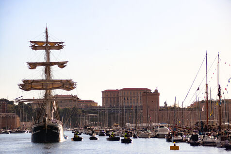 Après un périple de 12 jours depuis Athènes, le Belem, navire datant du XIXeme a accosté dans le Vieux Port au milieu d'une ferveur populaire.