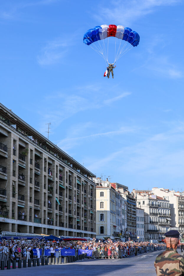 Le traditionnel défilé militaire du 14 juillet a eu lieu sur le Vieux-Port de Marseille, à l'occasion de la fête nationale française.