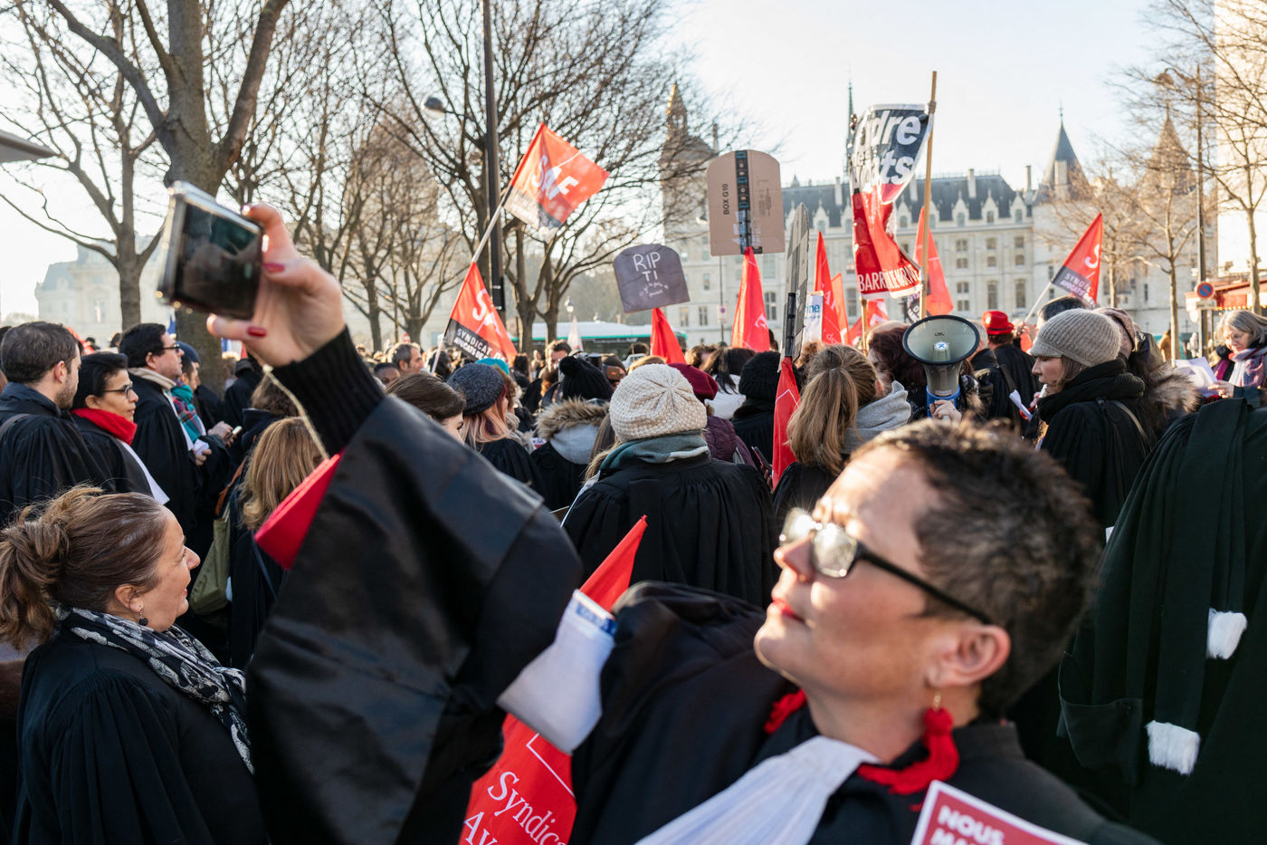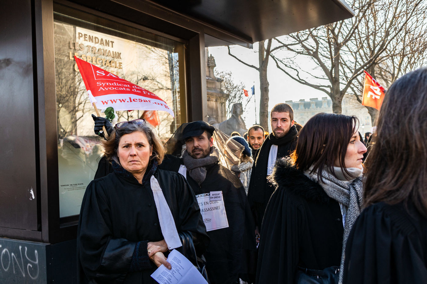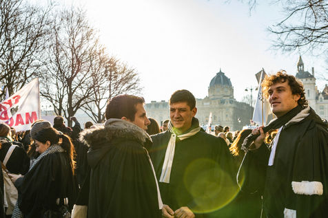 A l'appel du Barreau de Paris et de l'Ordre des avocats de Paris, un rassemblement a eu lieu place du Chatelet a Paris le 12 decembre 2018 pour protester contre cette reforme.