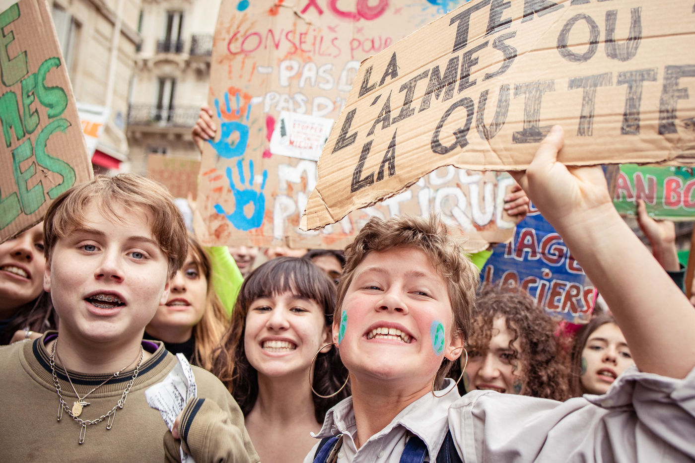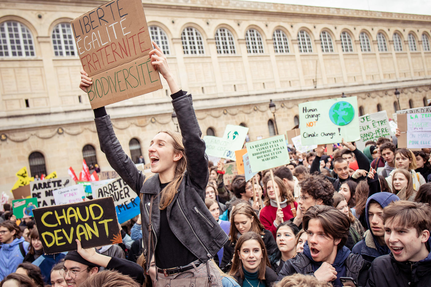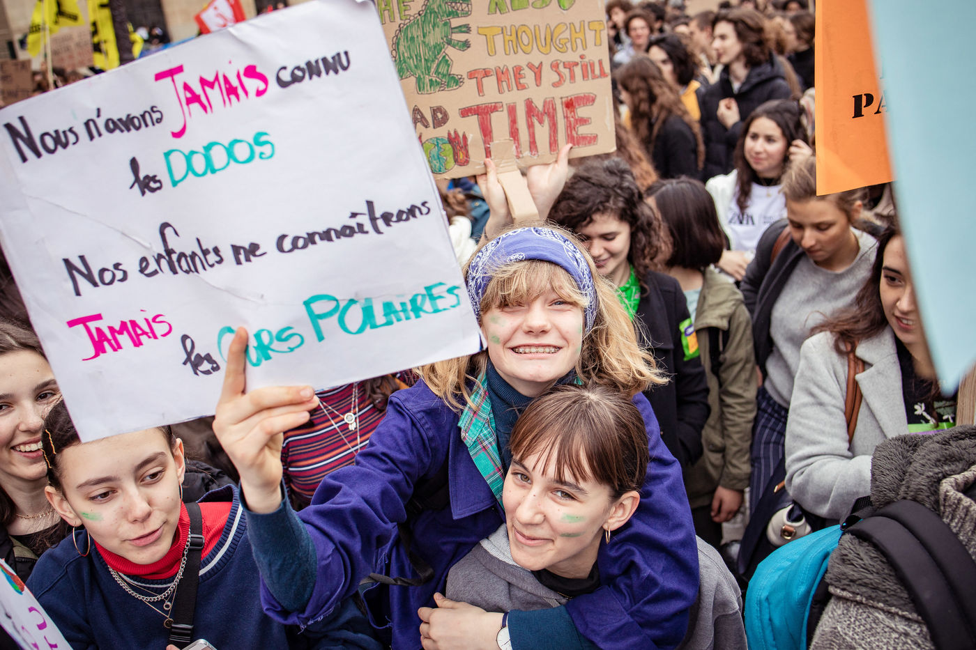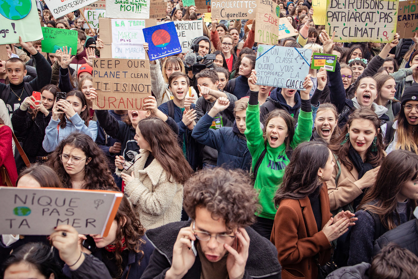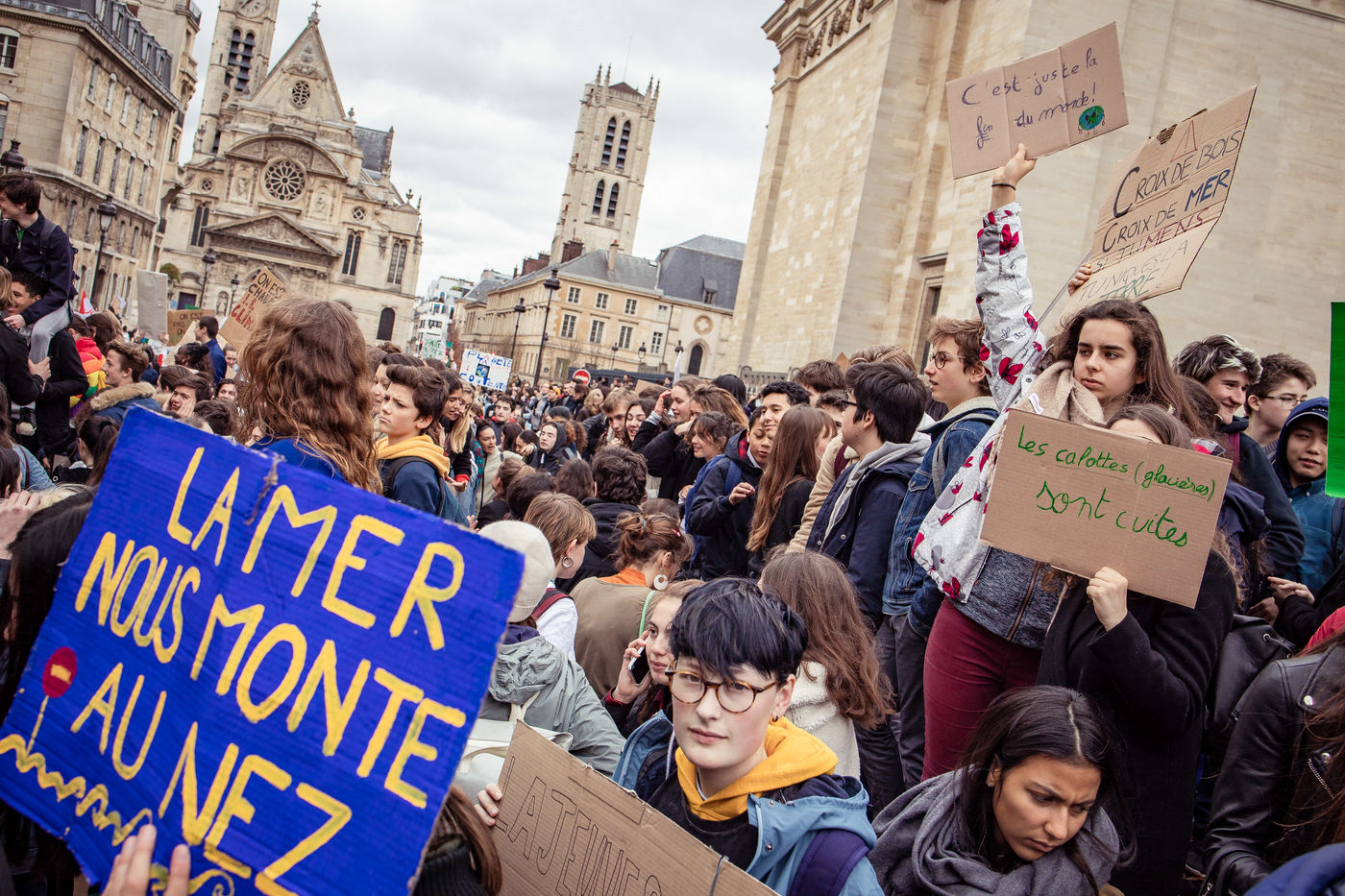 Des milliers de jeunes ont défilé pour le climat dans les rues de la capitale. Ils ont répondu à l?appel du mouvement YouthForClimate, dans le cadre de l?appel lancé par Greta Thunberg. Paris, 15 mars 2019.