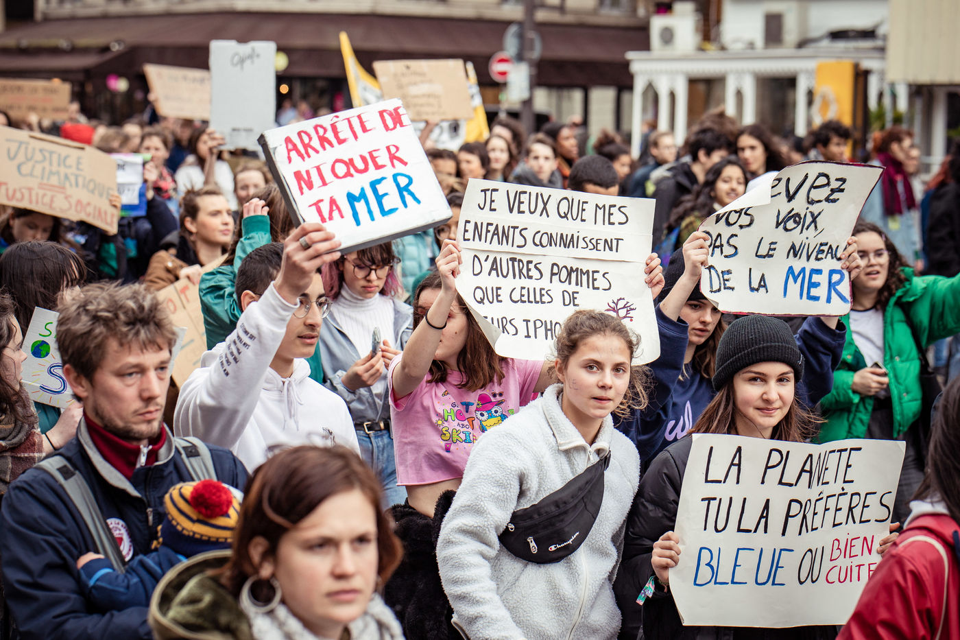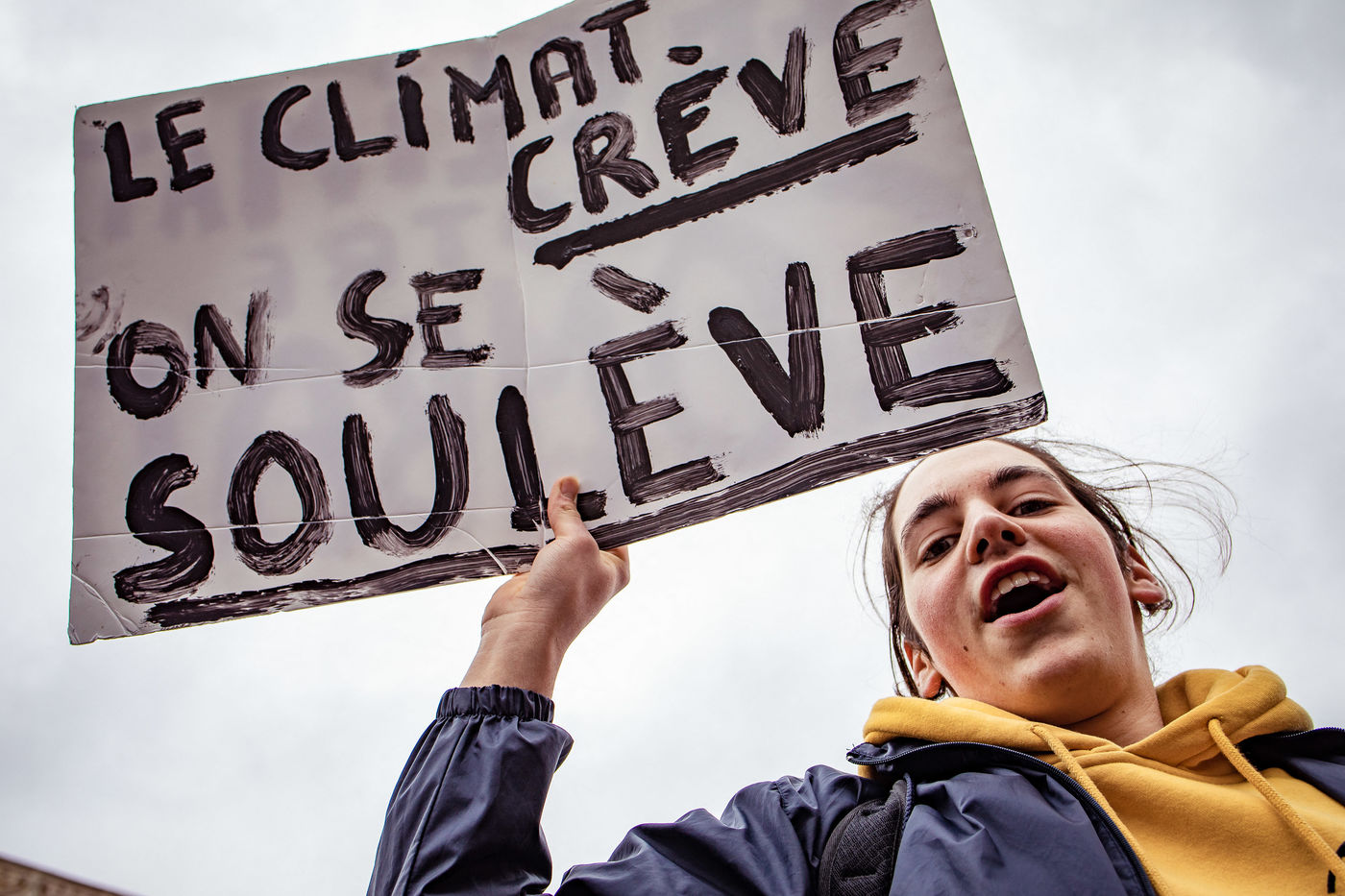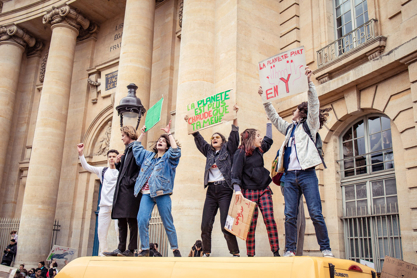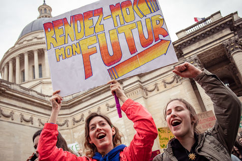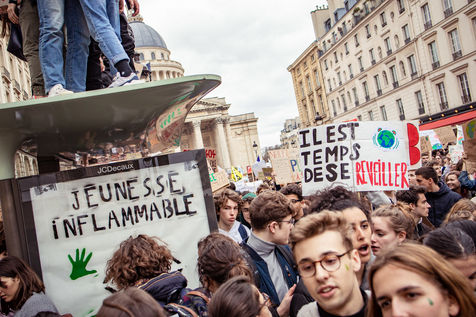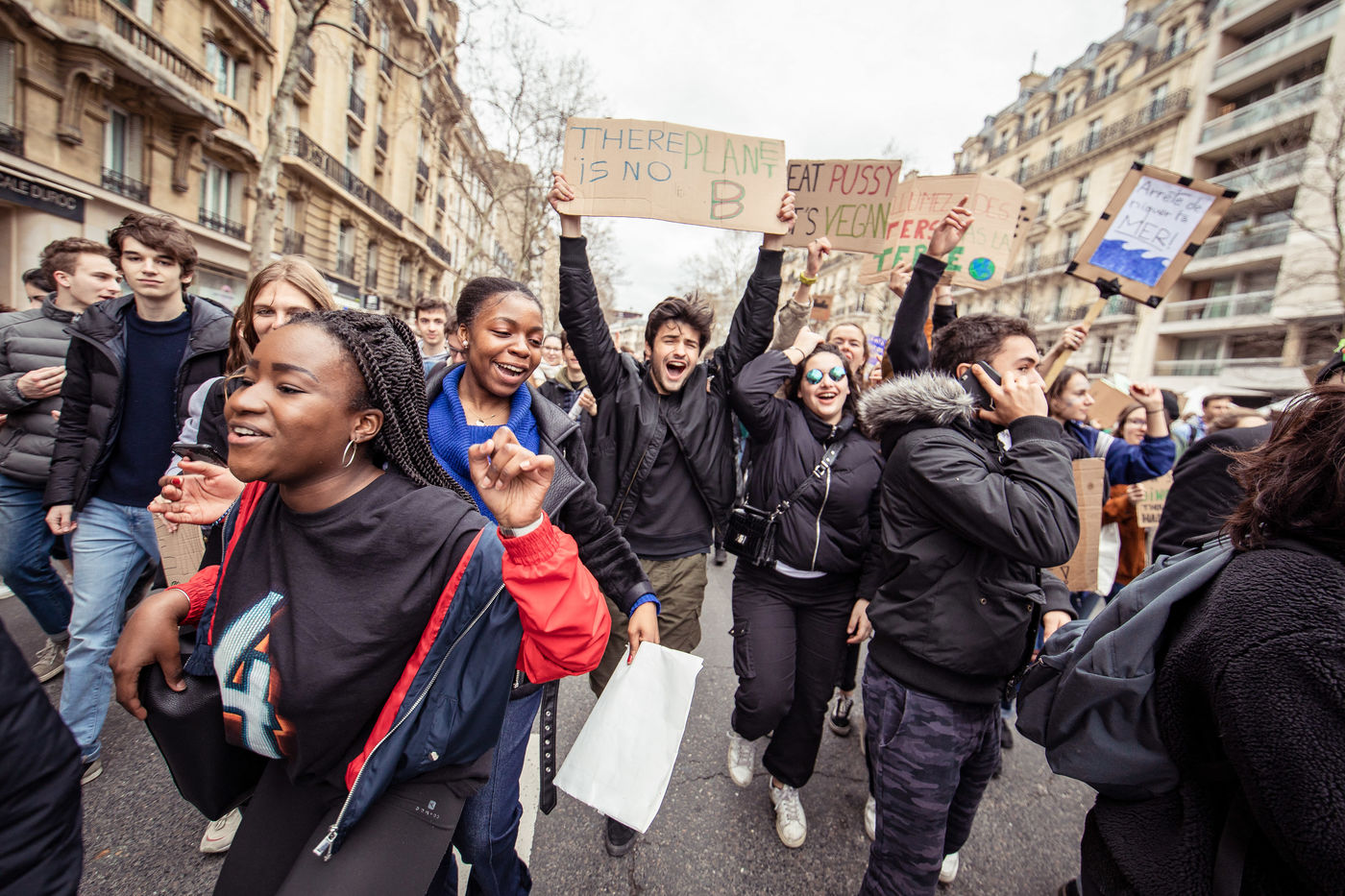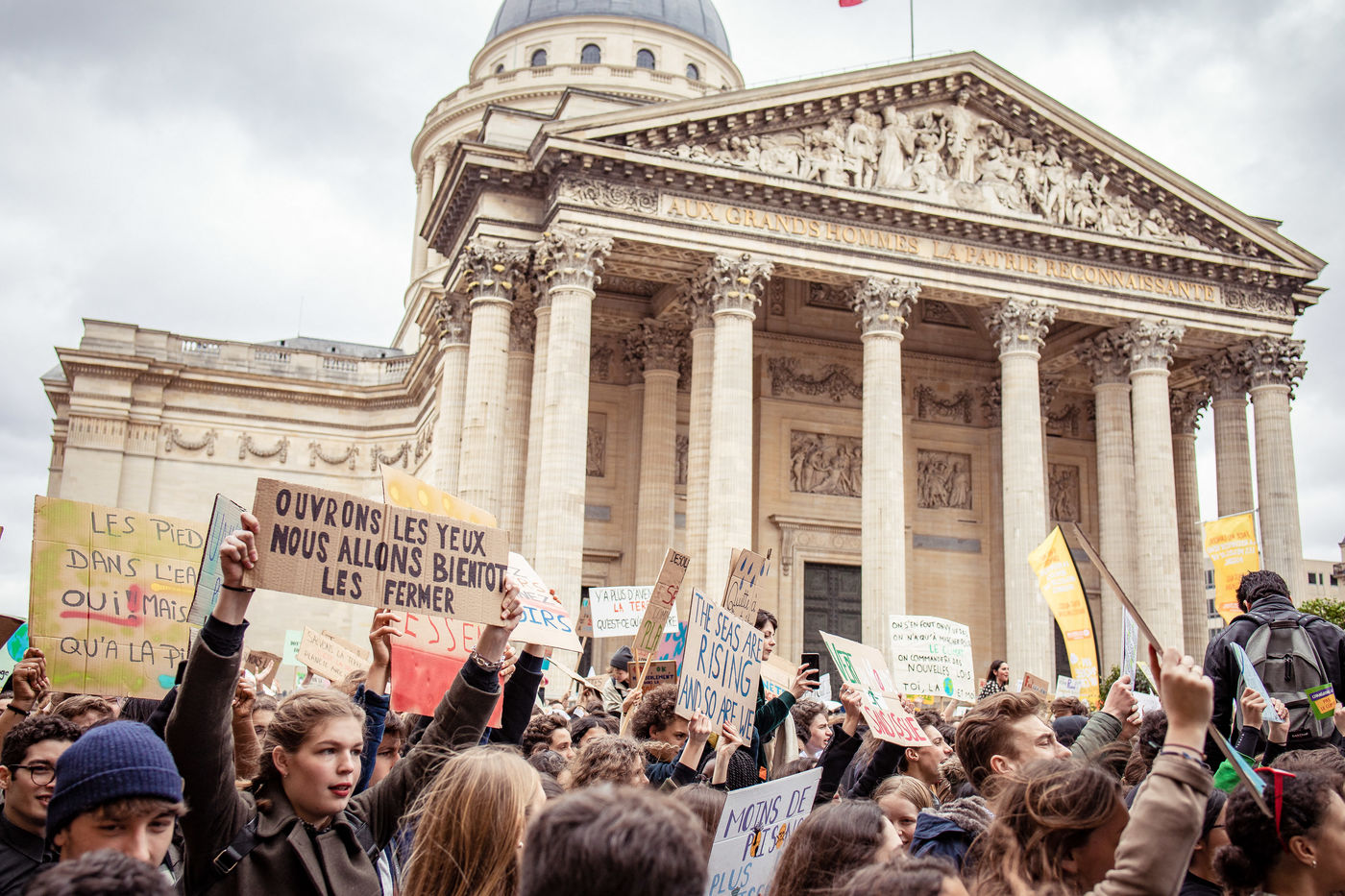 Des milliers de jeunes ont défilé pour le climat dans les rues de la capitale. Ils ont répondu à l?appel du mouvement YouthForClimate, dans le cadre de l?appel lancé par Greta Thunberg. Paris, 15 mars 2019.