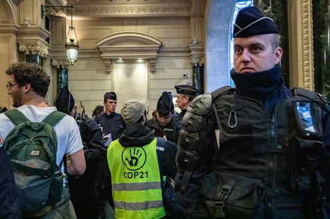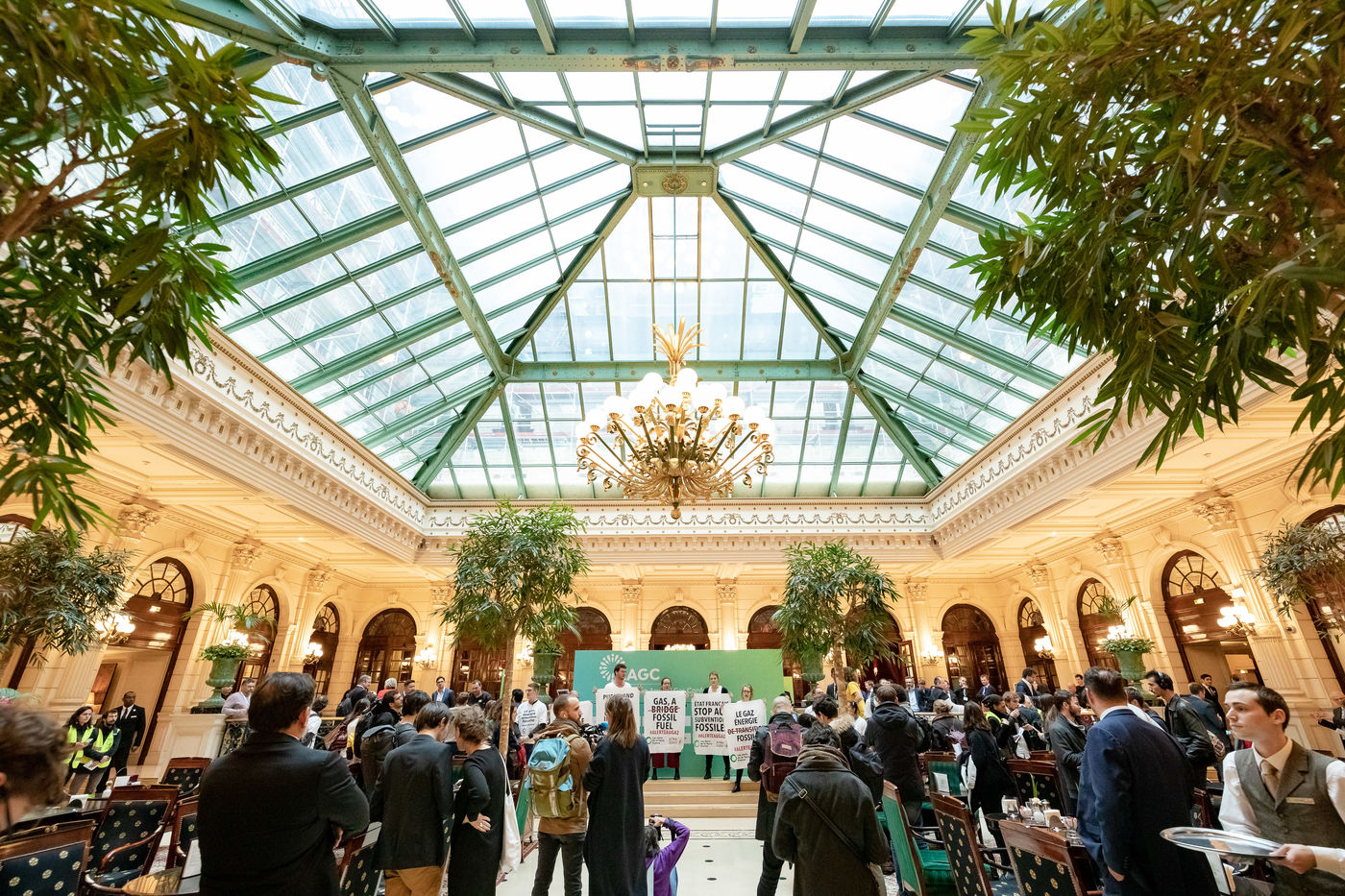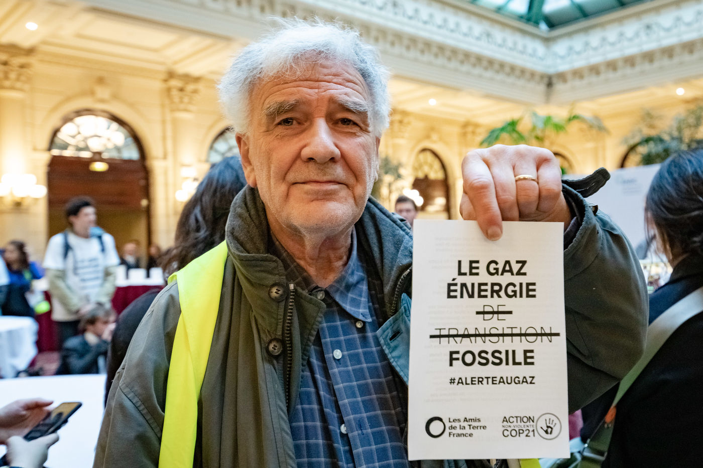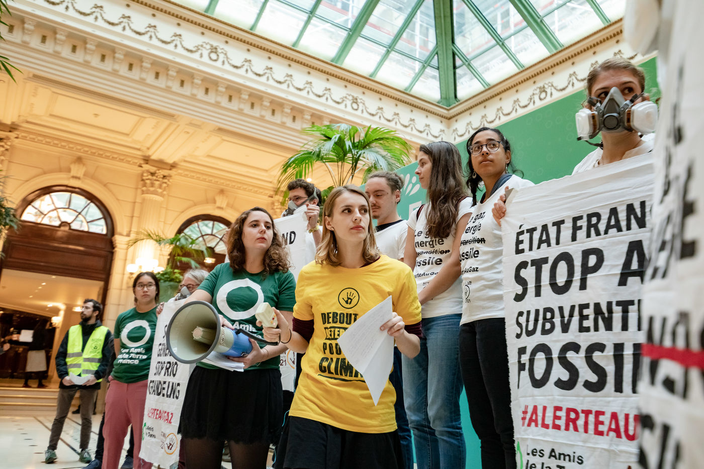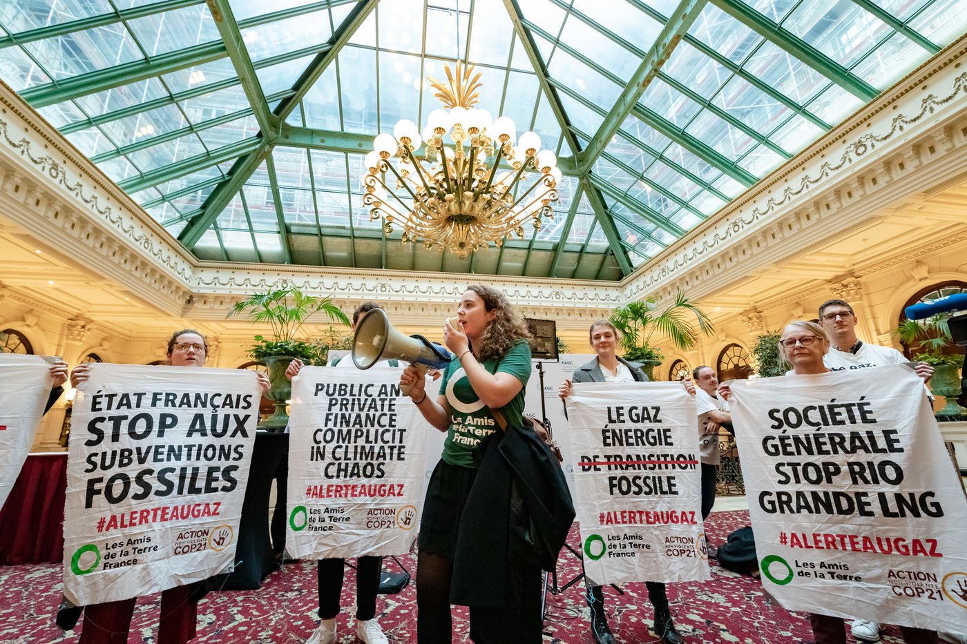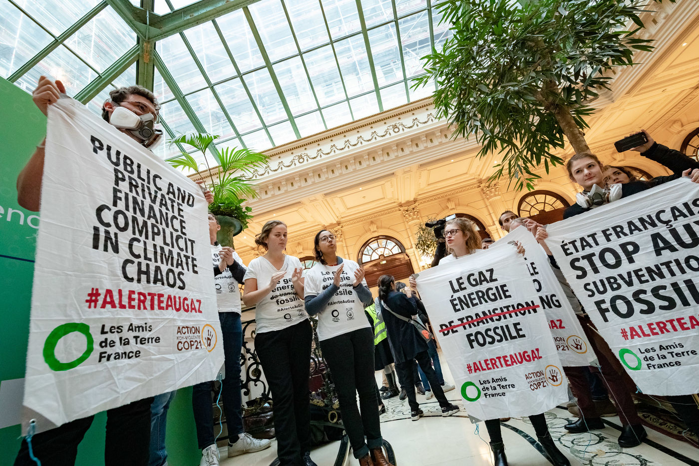 On Wednesday 6 November 2019 in Paris, 91 activists from Les Amis de la Terre and Action Non-Violente COP21 prevented the second day of the European Annual Gas Conference (EAGC), which brings together more than 300 representatives of French and European institutions, the gas industry, and its bankers including Société Générale. Activists call on public and private finance to end their massive support for gas to align with the goal of staying below 1.5°C of global warming.