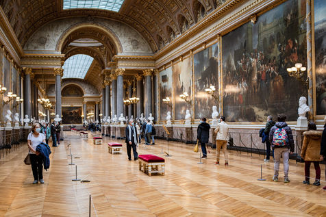 Illustration d une visite au Chateau de Versailles le samedi 17 octobre 2020, 2 semaines avant le reconfinement. Les visiteurs sont peu nombreux et masques mais tout semble normal.