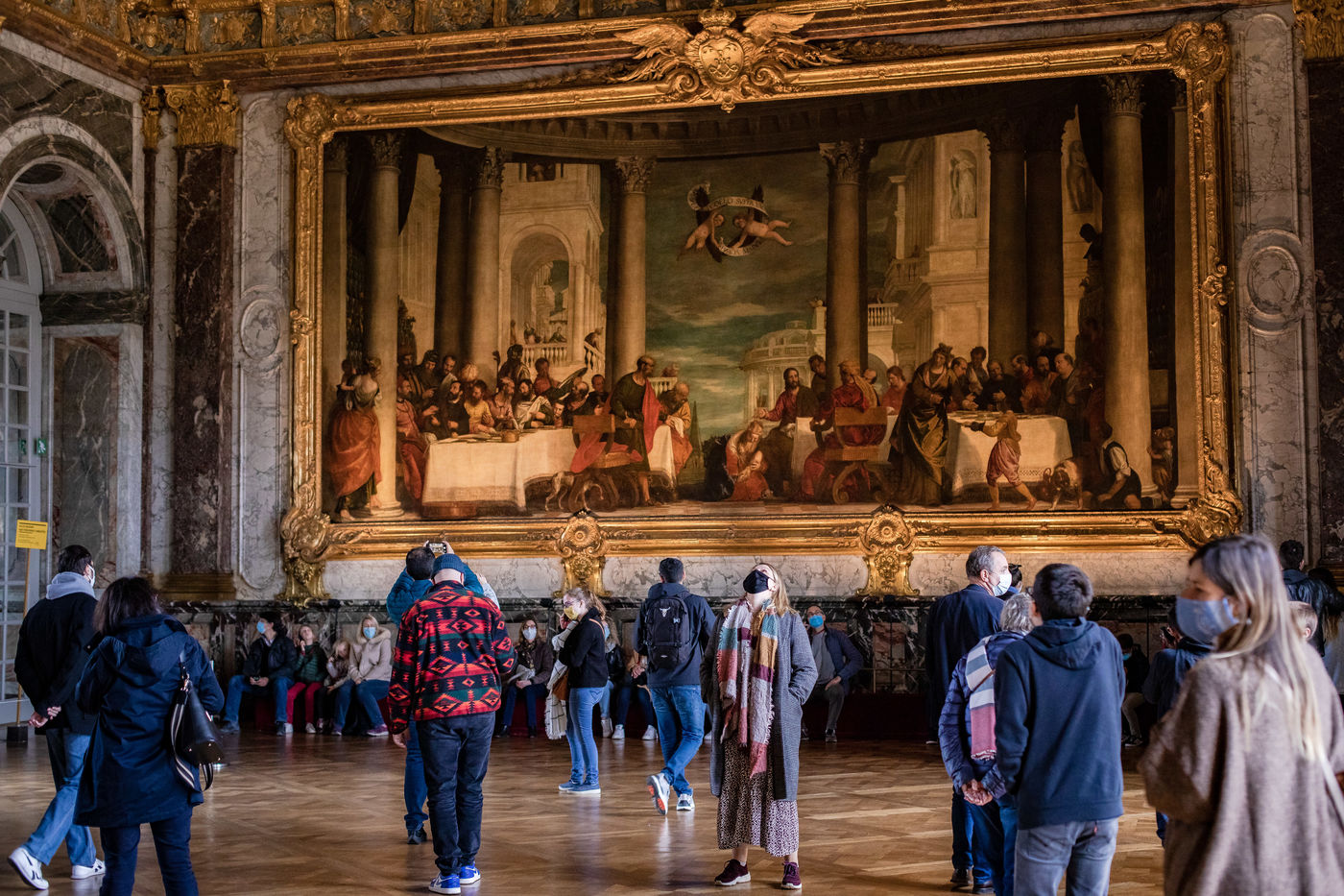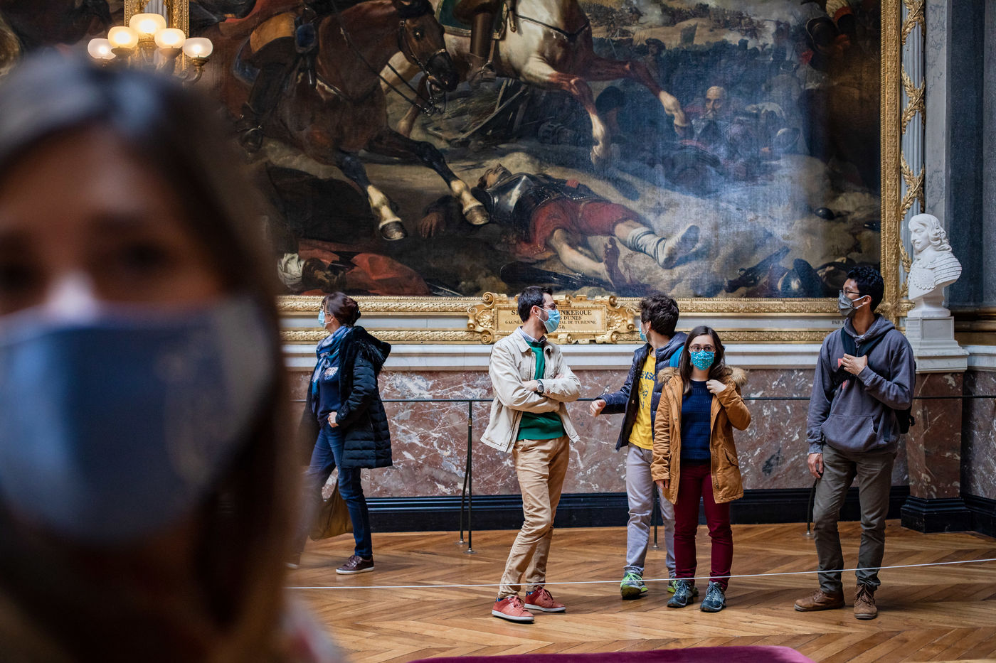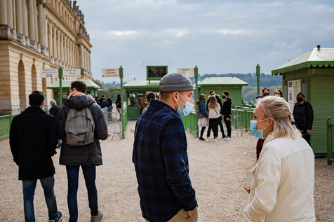 Illustration of a visit to the Palace of Versailles on Saturday, October 17, 2020, 2 weeks before reconfinement. Visitors are few and masked but everything seems normal.