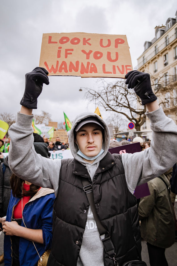 March for the climate and social justice in Paris on March 12, 2022 with the slogan "Look Up" in reference to the film "Don't look up" to bring ecological issues into the presidential campaign.