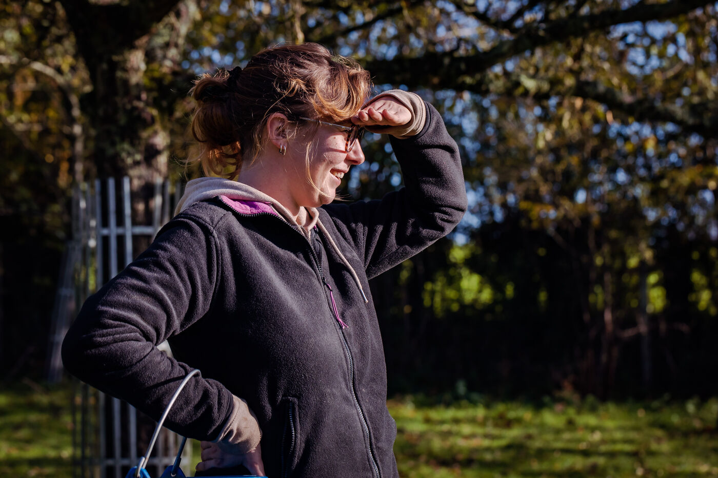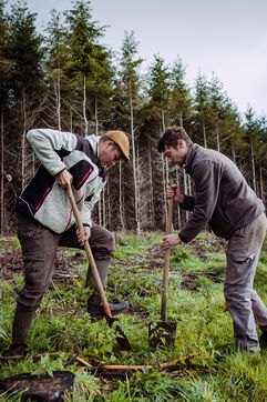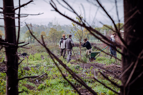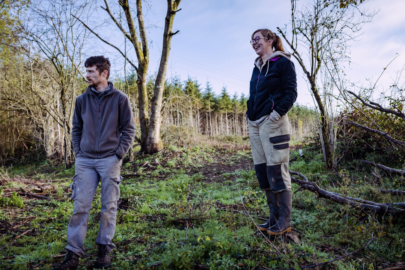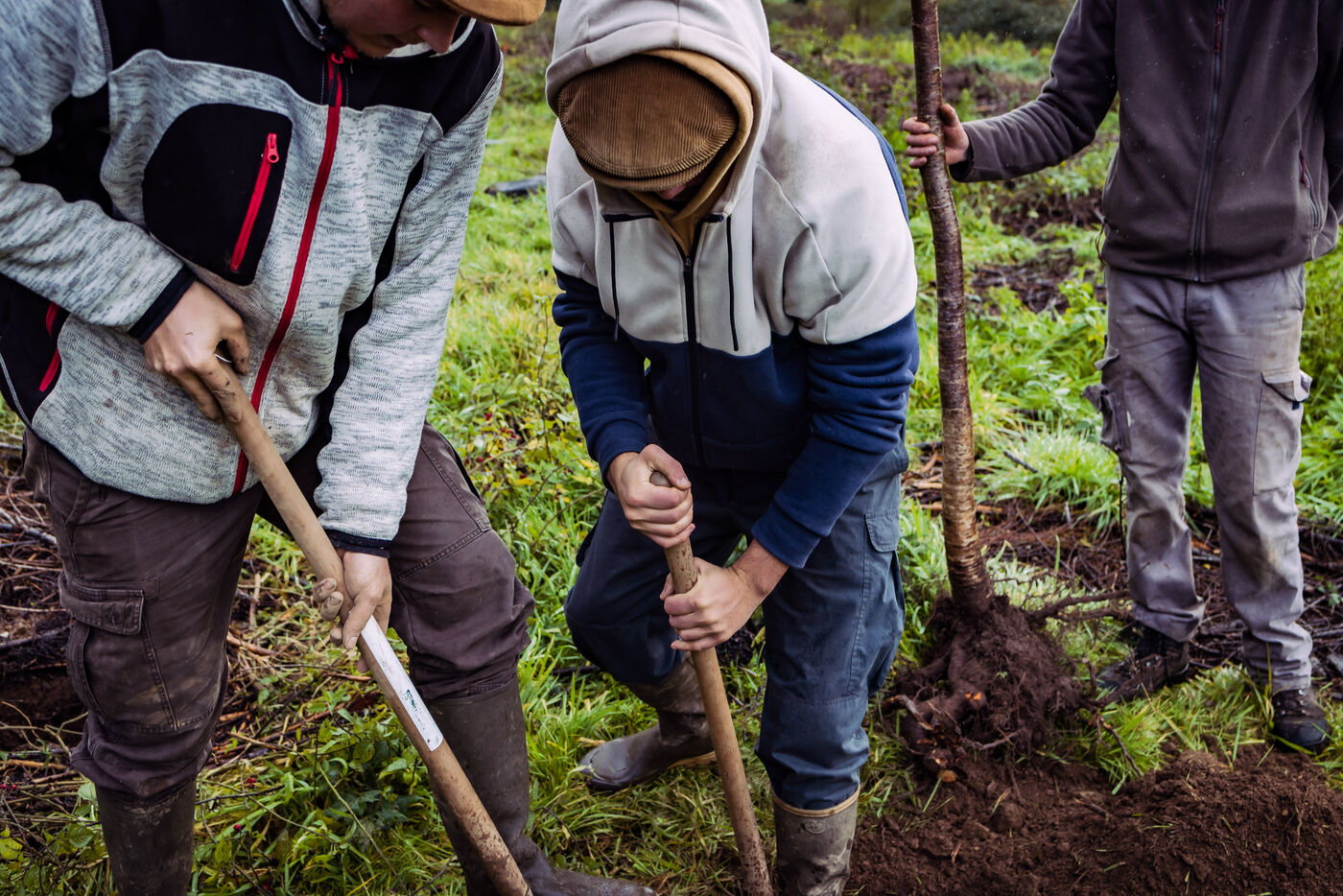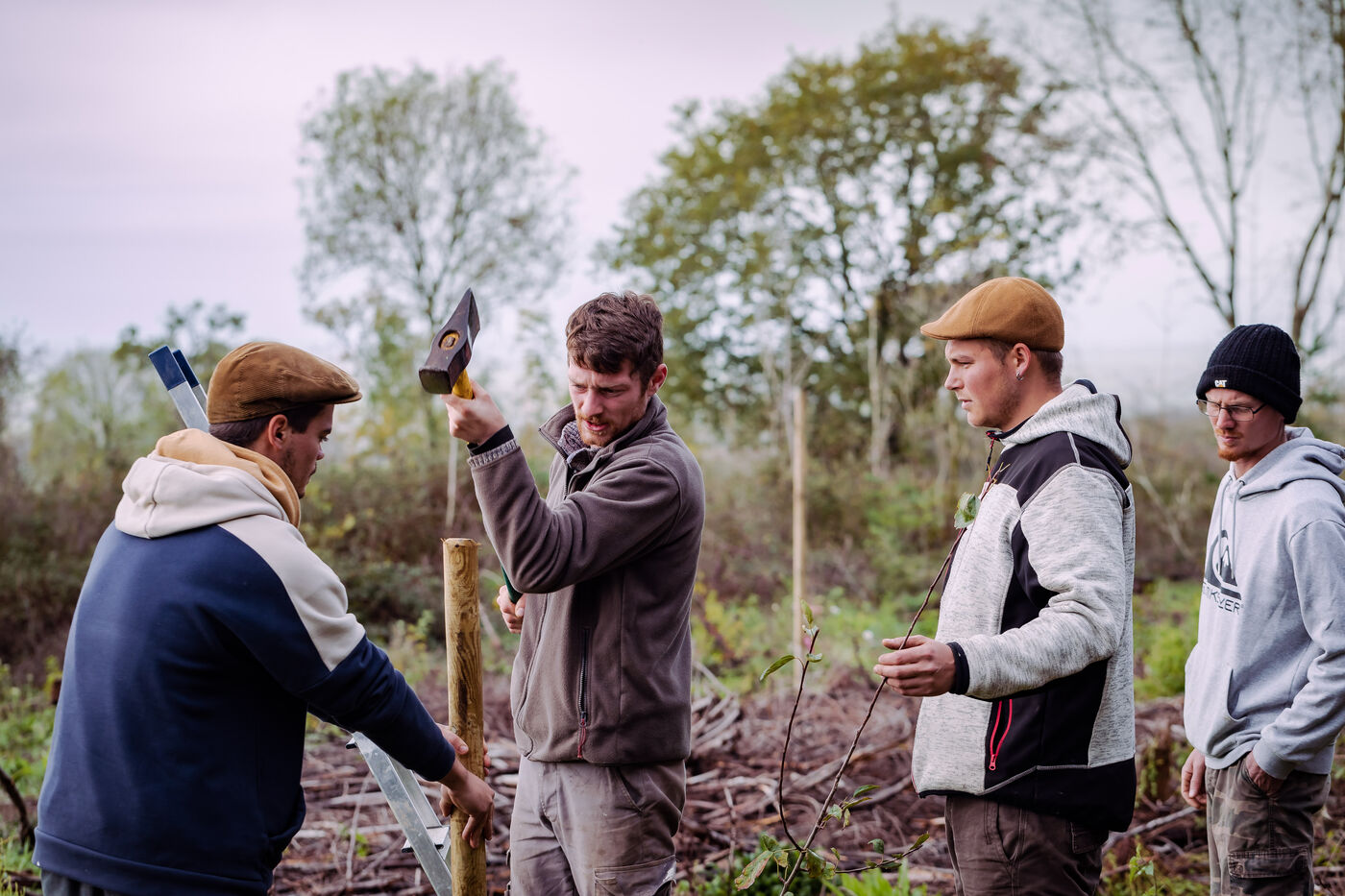 La ferme du Vieux Douet dans le bocage normand est un projet développé par Baptiste et Adèle. Tout deux sont des nouveaux arrivants dans le secteur de l'agriculture. En attendant l'ouverture de leur ferme pédagogique au public, ils agrandissent le verger et préparent l'arrivée d'un poulailler mobile. A Condé-en-Normandie le 25 Novembre 2022.