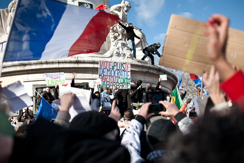 11janvier 2015 - rassemblement républicain à Paris, en hommage aux victimes des attentats de Charlie Hebdo et du supermarcher casher. © Julien Jaulin/hanslucas