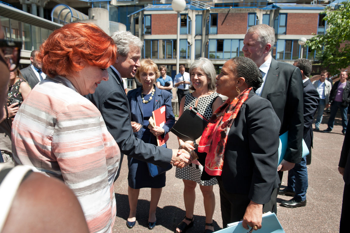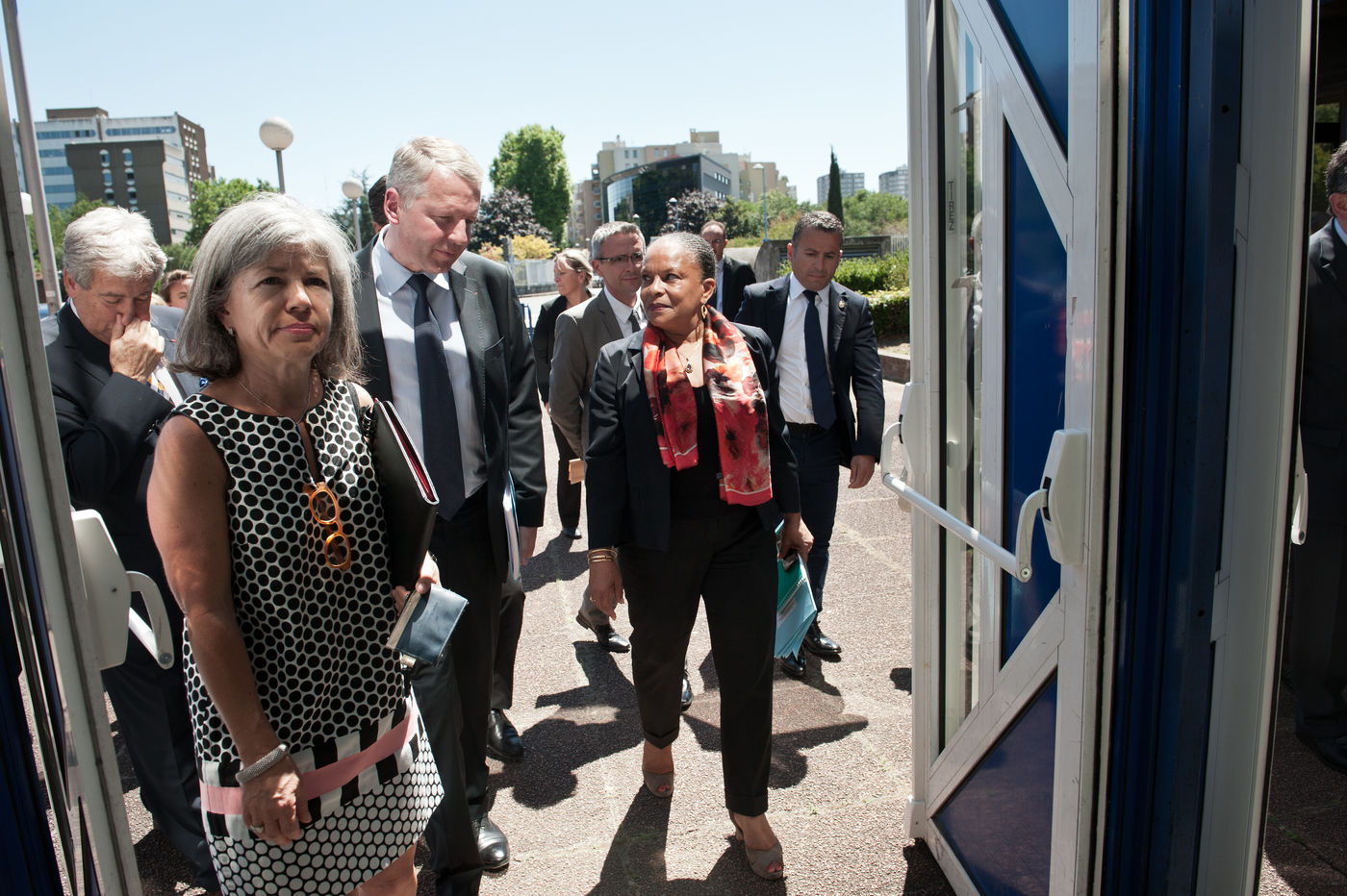 30 juin 2015- Christiane Taubira, garde des sceaux ,ministre de la justice au tribunal de Bobigny afin d'installer le comite? de pilotage de l'expe?rimentation sur la lutte contre les conduites addictives