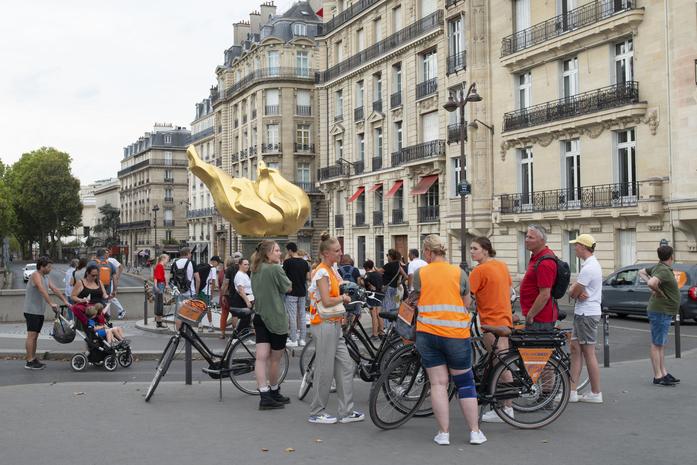 Built in 1987, the monument is constructed in gray and black marble. It is a life-size, gilded copper replica of the flame of Bartholdi's famous Statue of Liberty, standing at the entrance to New York City. This gift, offered by the International Herald Tribune, symbolizes the friendship between the French and American peoples.