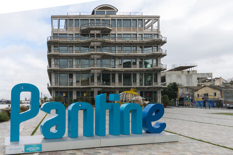 Along the canal de l'Ourcq, the giant letters forming the name "Pantin" installed Place de la Pointe have been given an additional E.